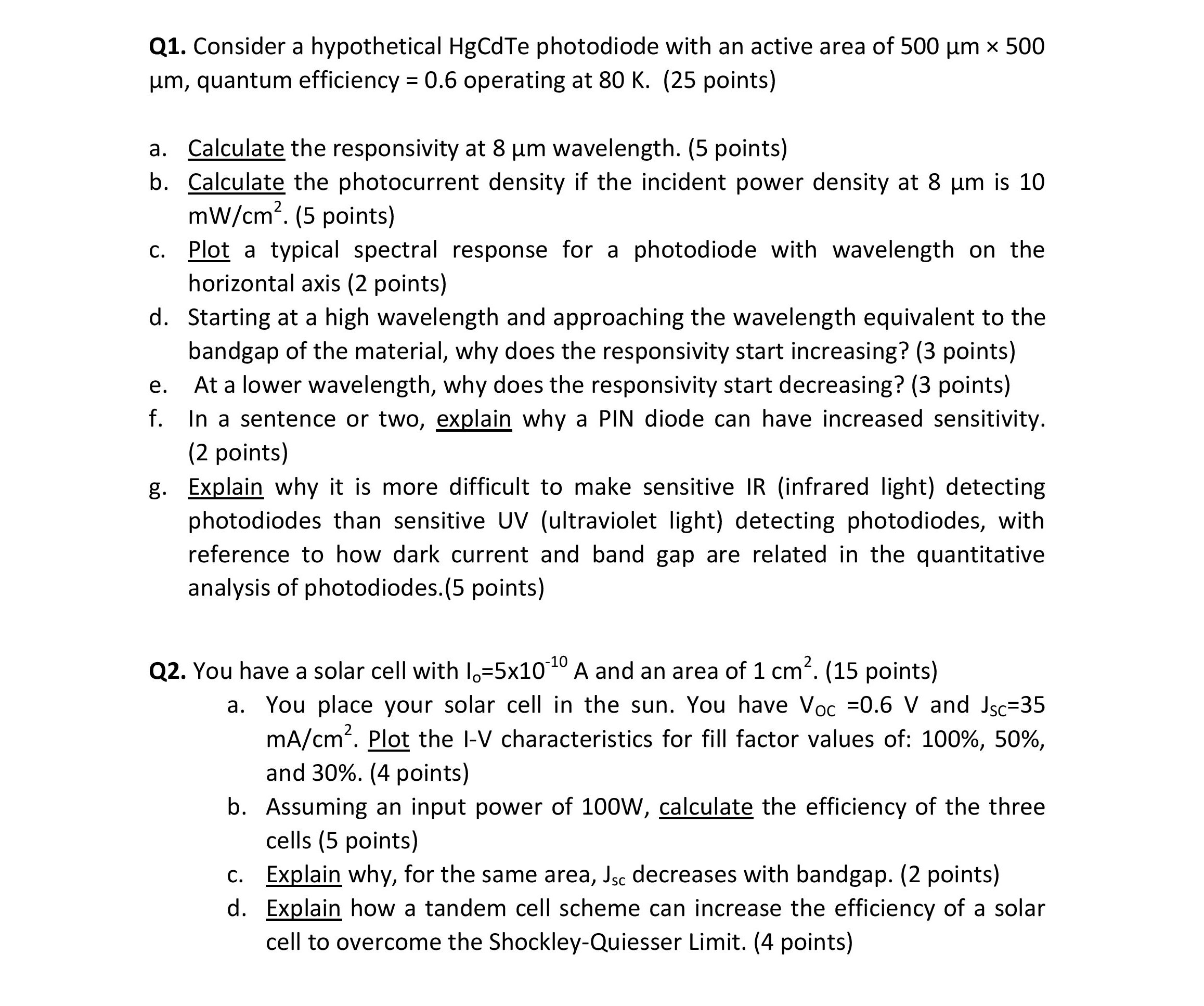 Q1. Consider a hypothetical HgCdTe photodiode with an active area o...