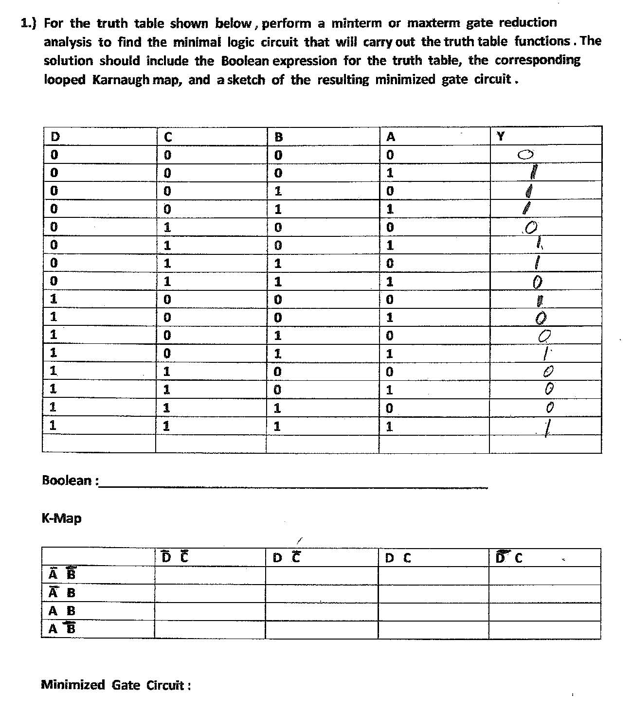 1.) For the truth table shown below, perform a minterm or maxterm g...