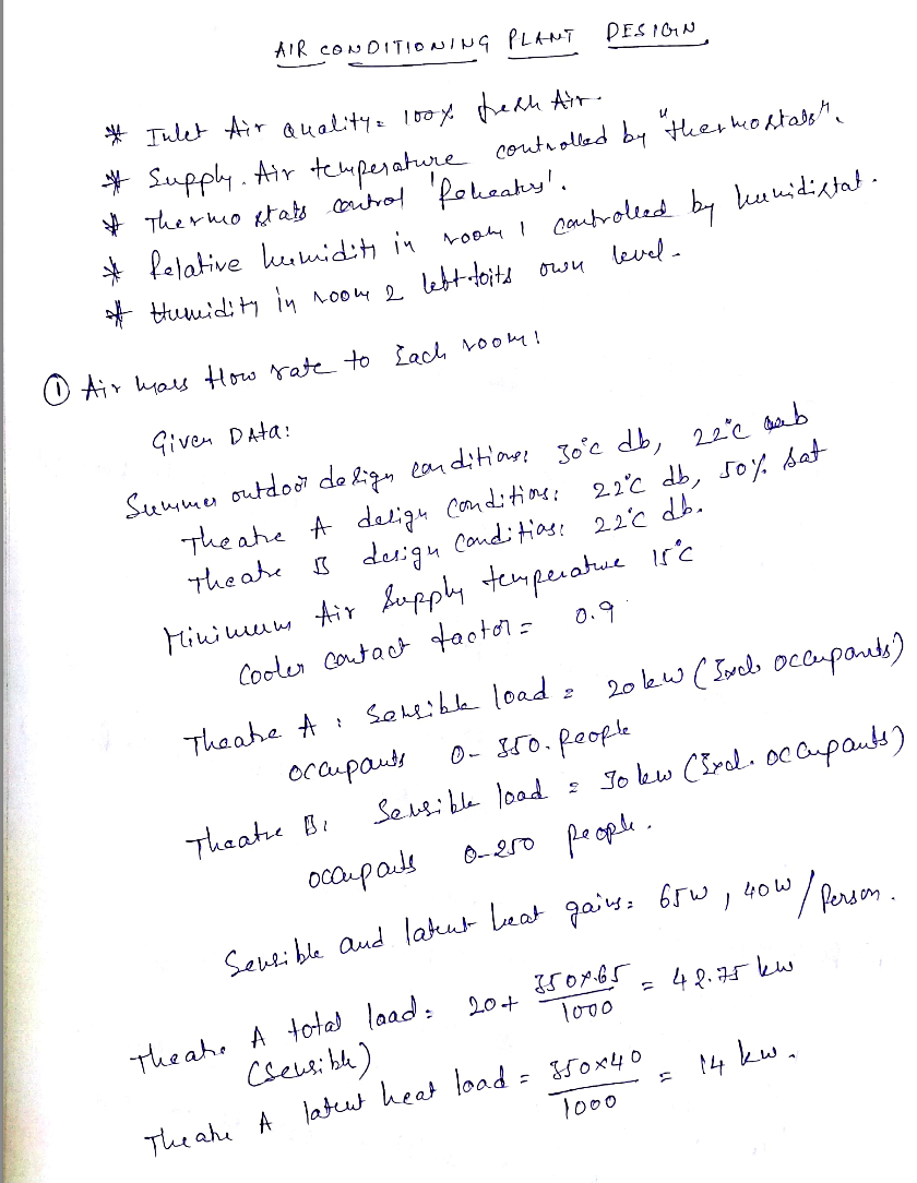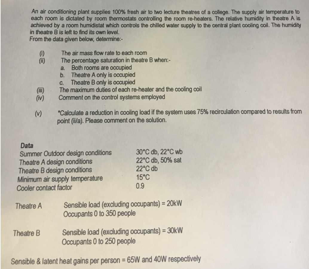 An air conditioning plant supplies 100% fresh air to two lecture th...