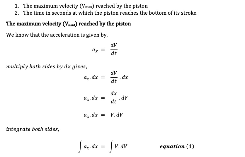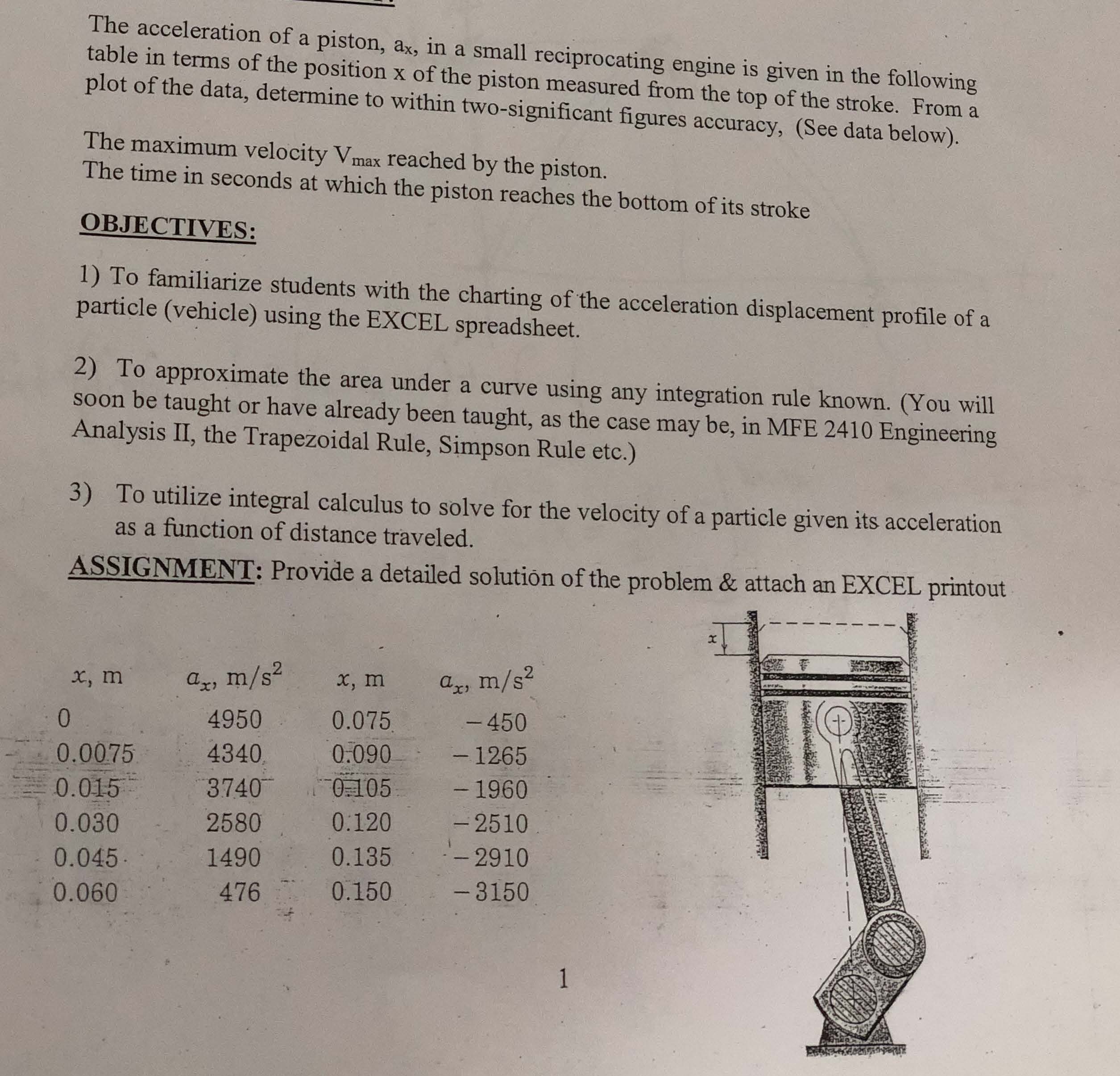 The table acceleration in of a piston, ax, in a small reciprocating...