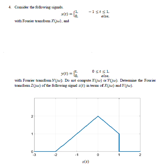 4. Consider the following signals. x(t) = (o: -1else, with Fouri...