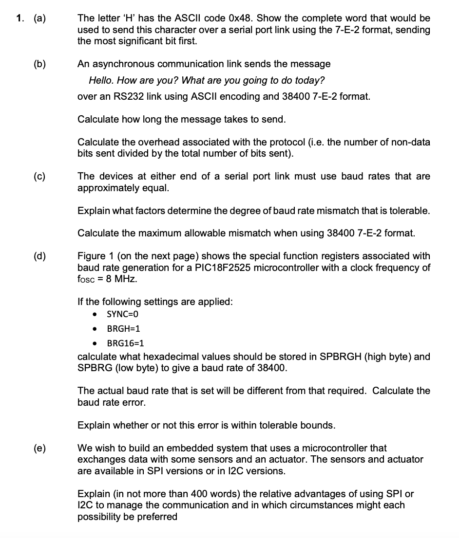 1. (a) The letter ‘H’ has the ASCII code 0x48. Show the complet...