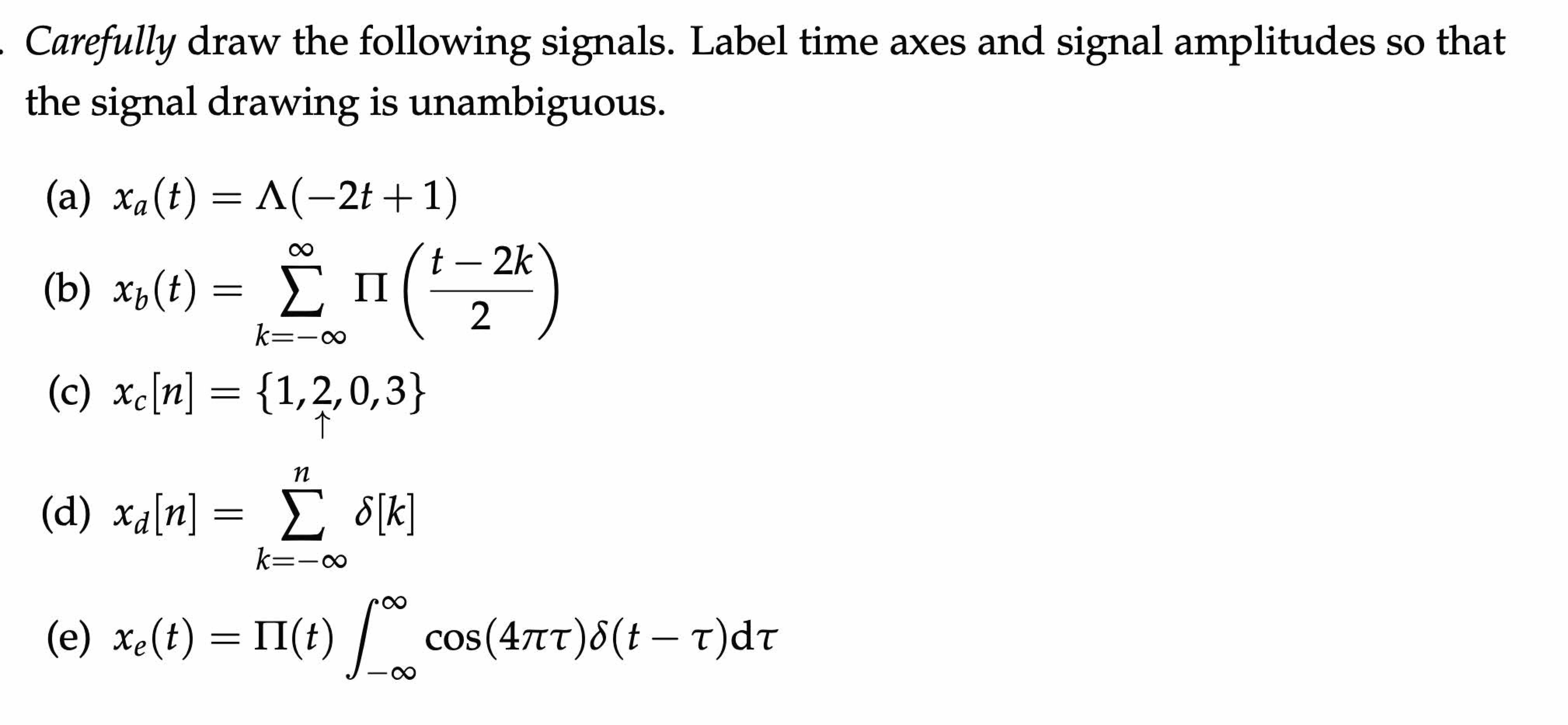 Carefully draw the following signals. Label time axes and signal am...