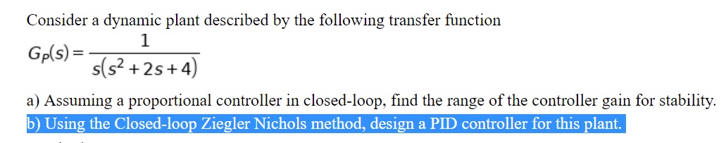 Consider a dynamic plant described by the following transfer functi...