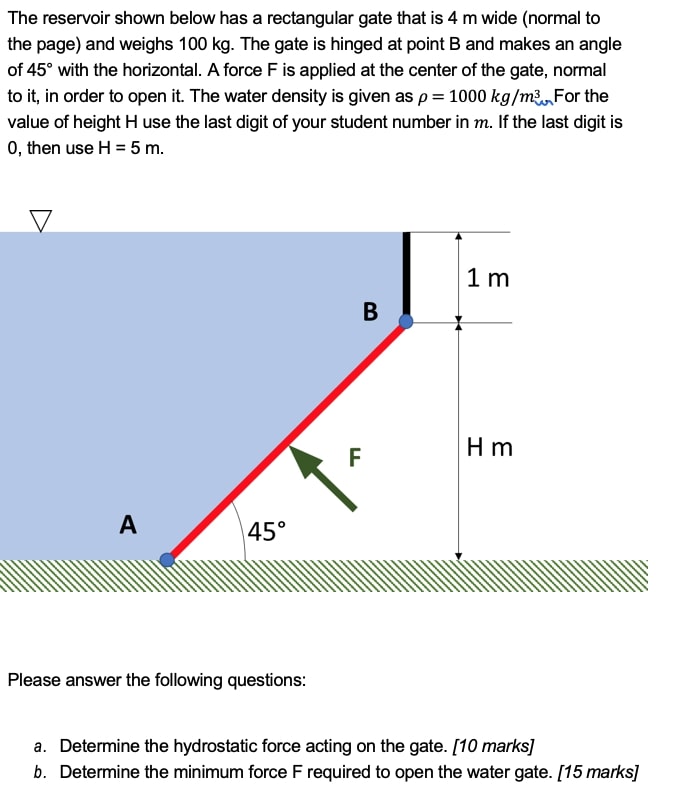 The reservoir shown below has a rectangular gate that is 4 m wide (...