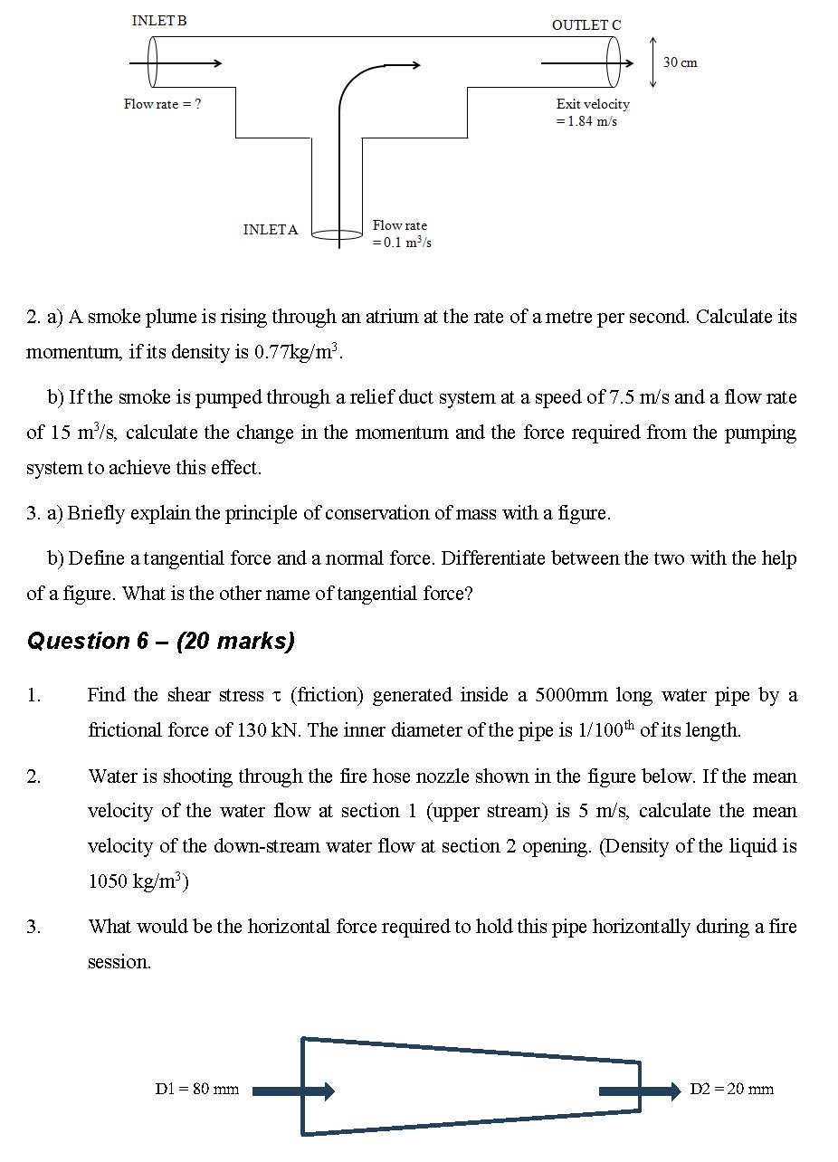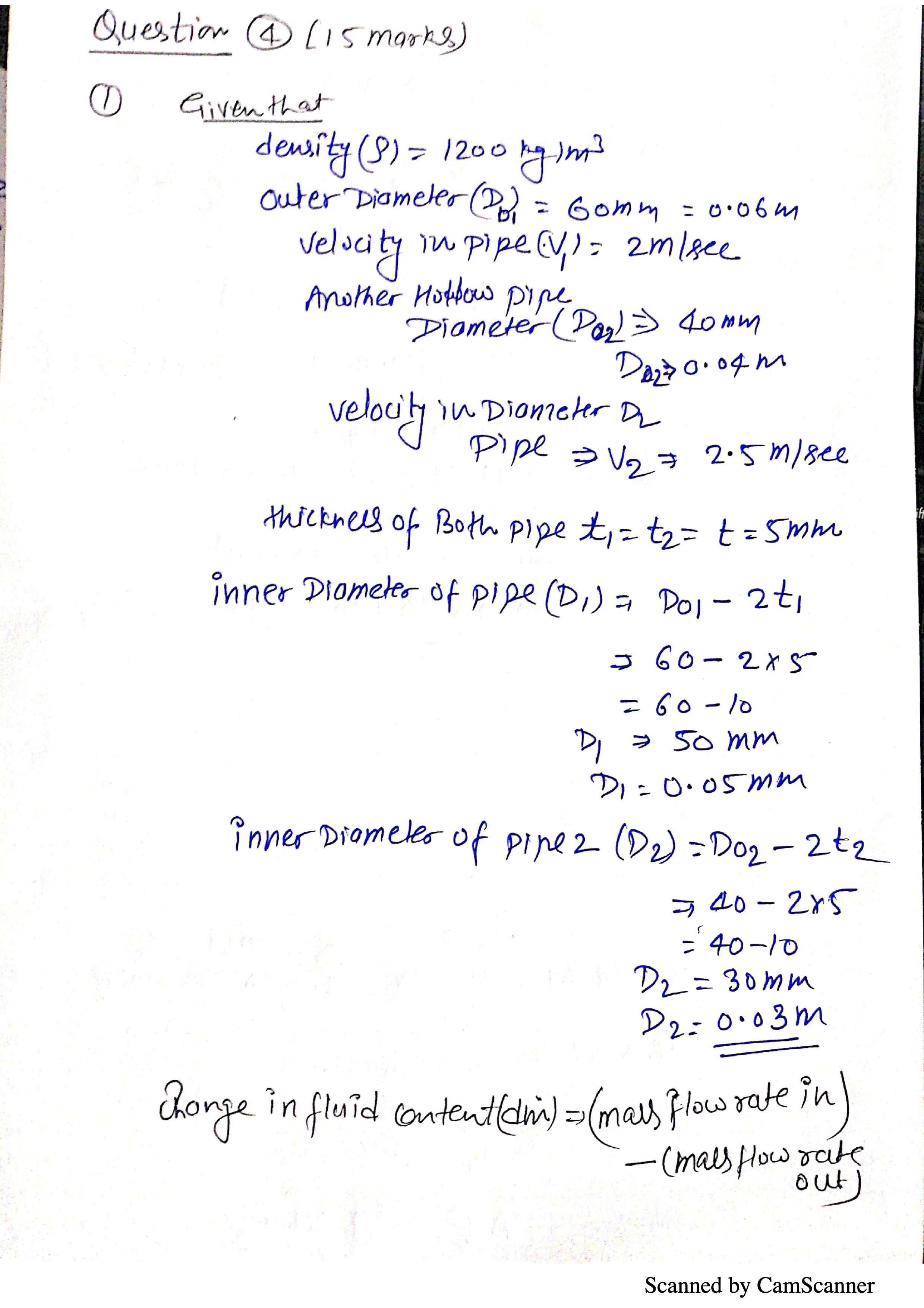 Question 4 (15 marks) 1. A fluid with density 1200 kg/m³ flows ...