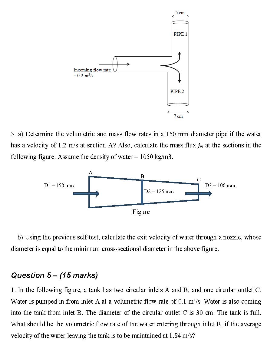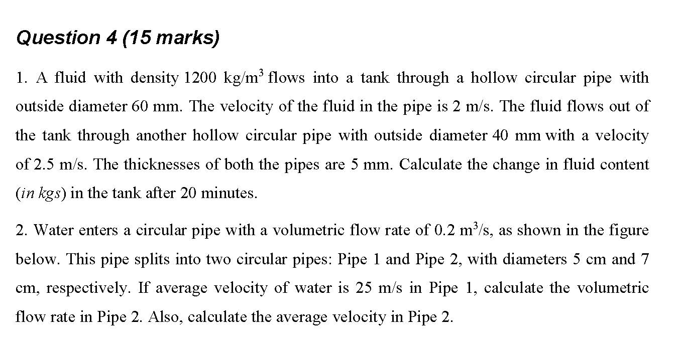 Question 4 (15 marks) 1. A fluid with density 1200 kg/m³ flows in...