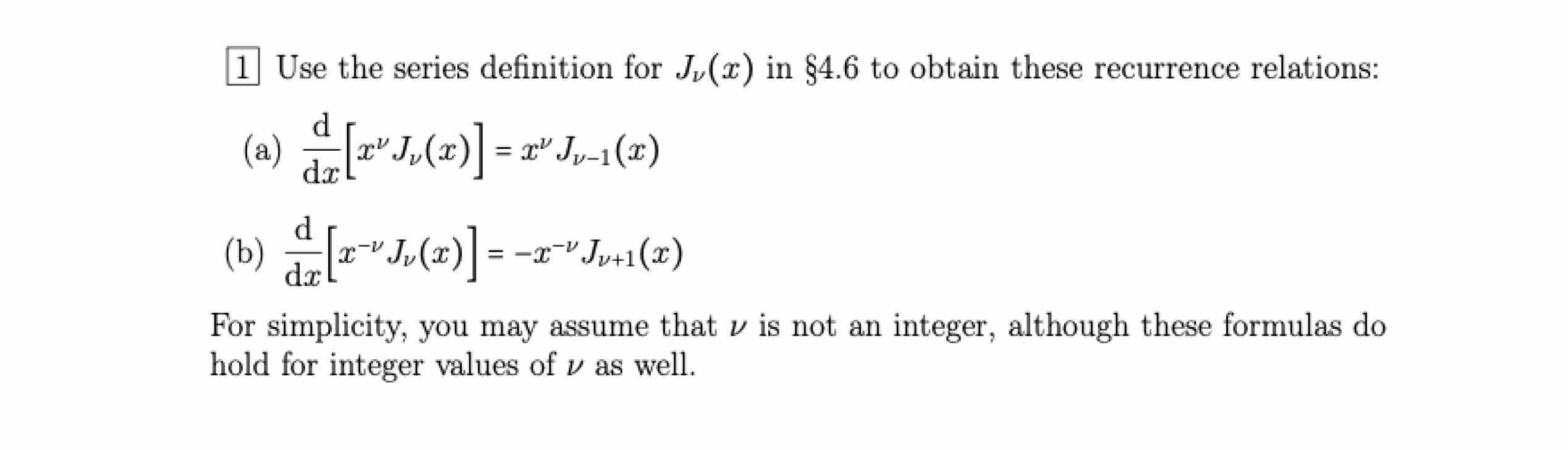 1 Use the series definition for J(x) in §4.6 to obtain these recu...