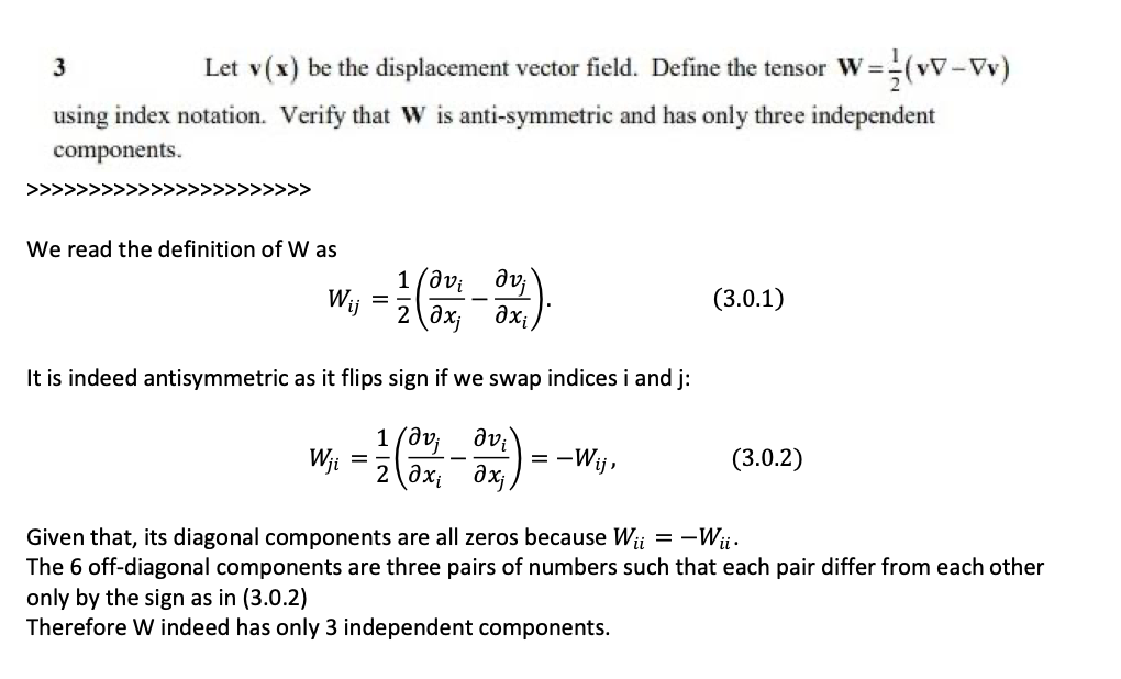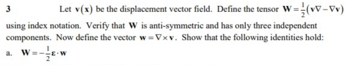 3 Let v(x) be the displacement vector field. Define the tensor W==...