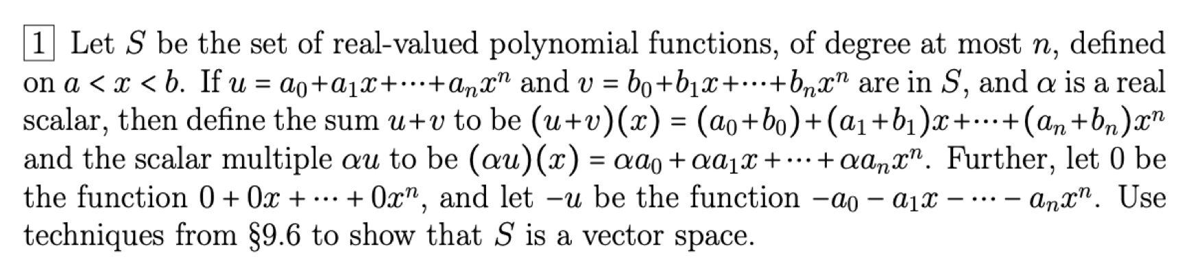 1 Let S be the set of real-valued polynomial functions, of degree a...