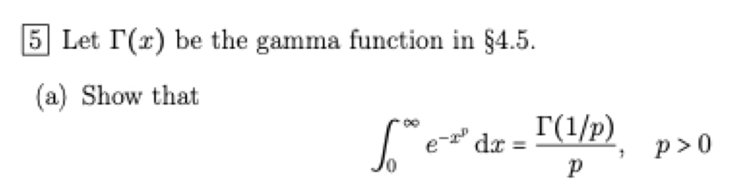 5 Let T(x) be the gamma function in §4.5. (a) Show that so T(...