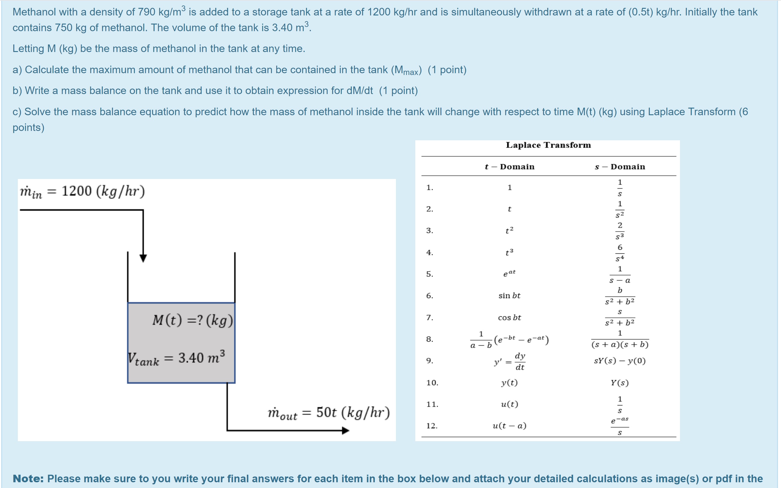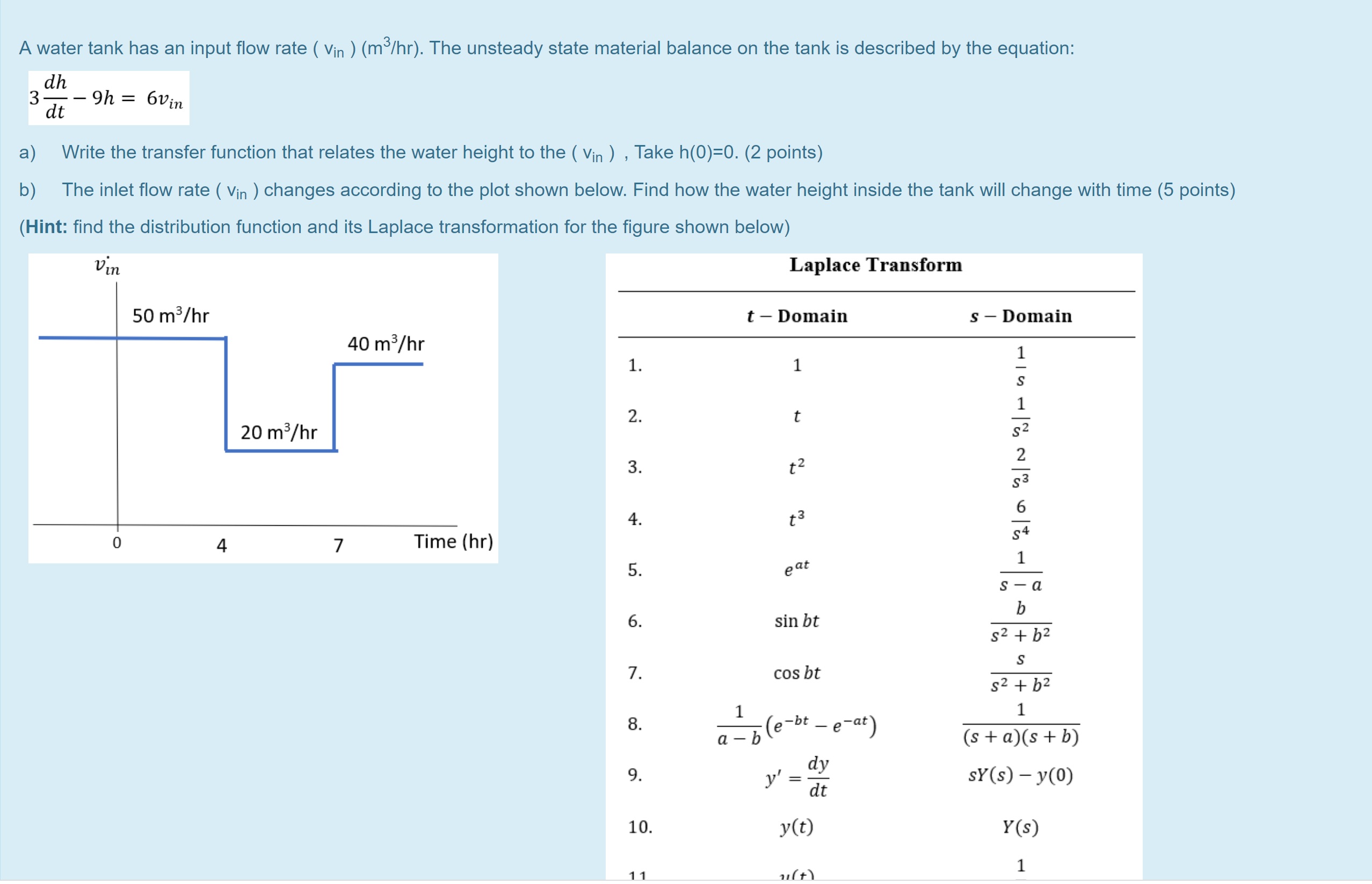 A water tank has an input flow rate ( (Vin ) (m ³/hr). The unstea...