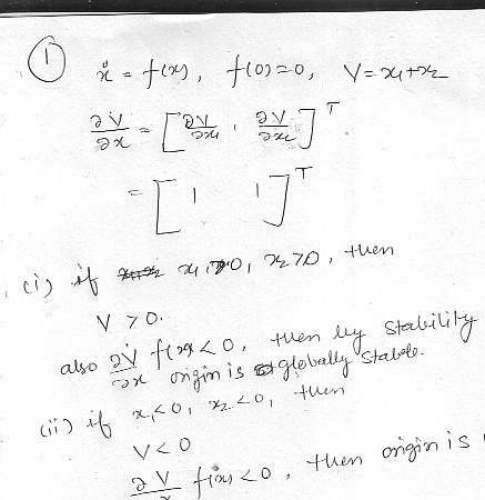 Problem 1 Let x = f(x) with xeR² and f(0)=0. Let V = X1 + X2 and...