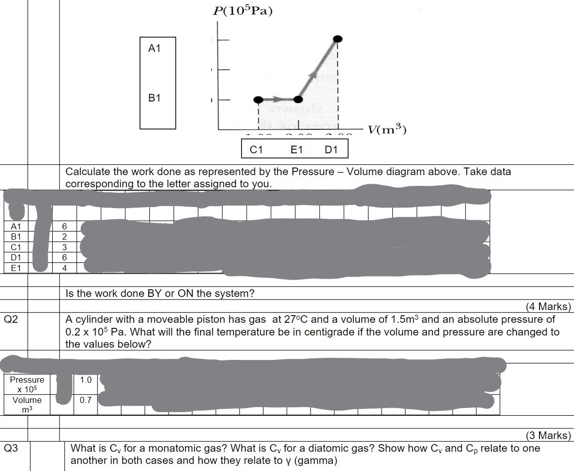 P(105Pa) A1 B1 V(m³) C1 E1 D1 Calculate the work done as re...