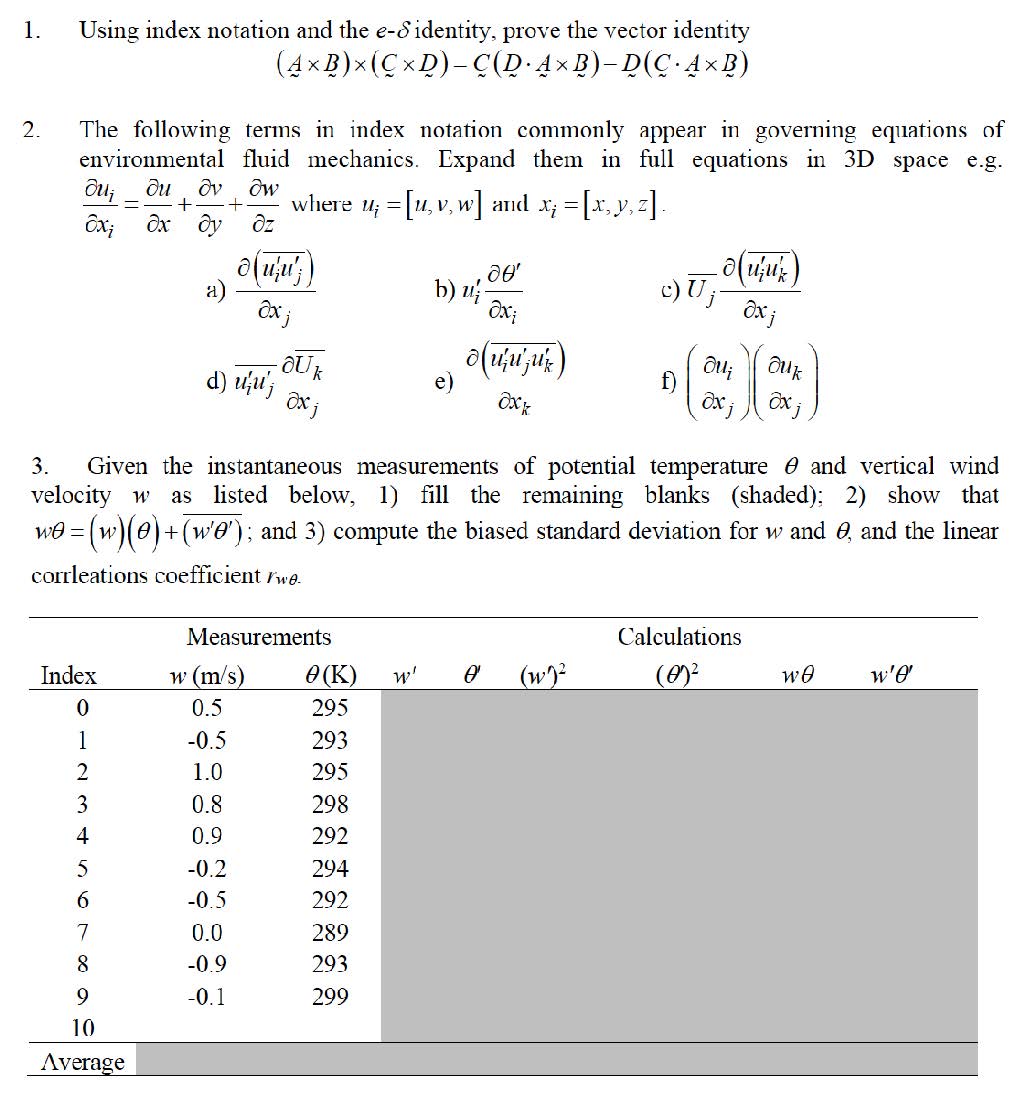 1. Using index notation and the e-8 identity, prove the vector ide...