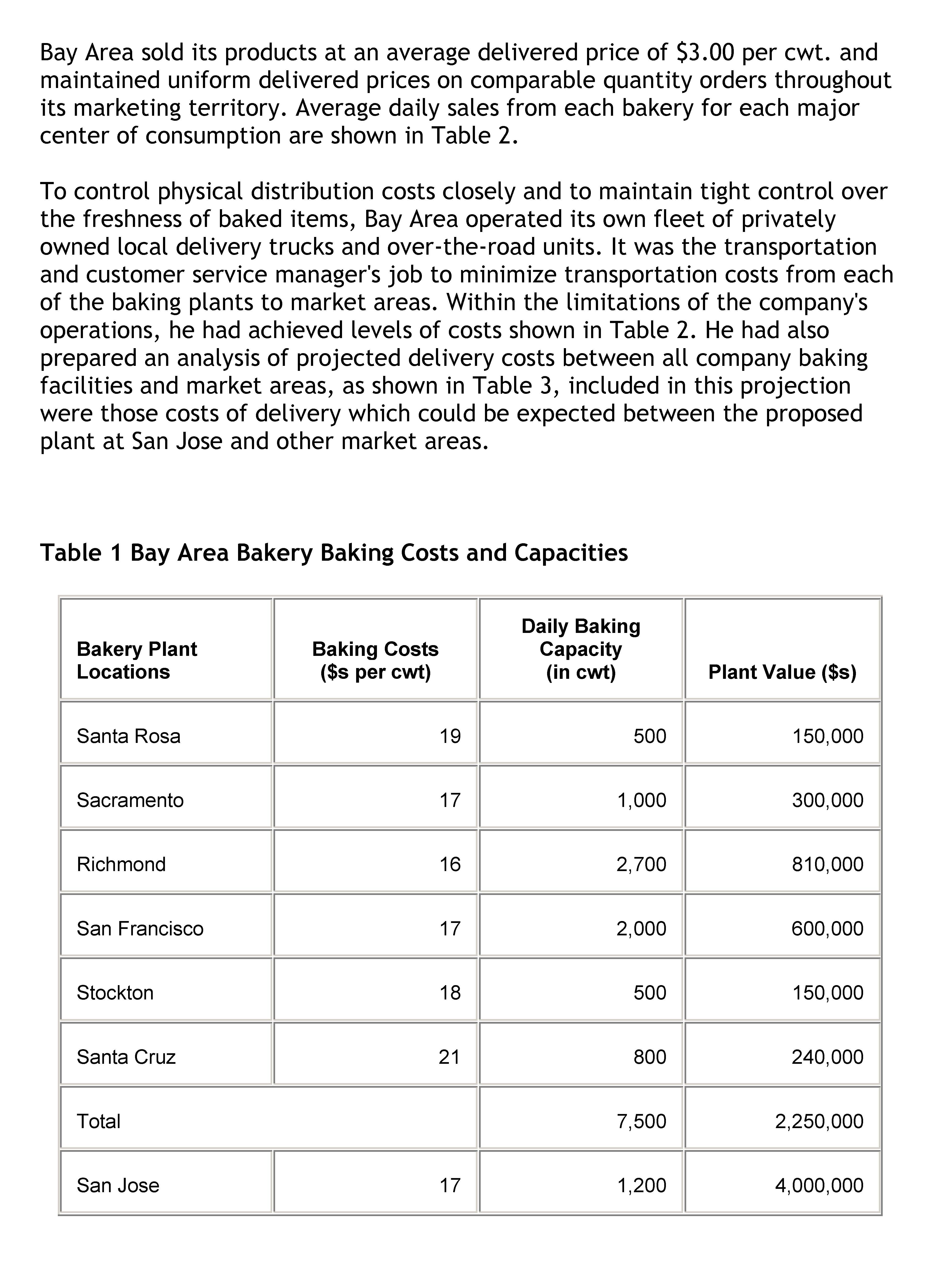 Bay Area Bakery Company Case New Bakery Proposal Bay Area Bakery ...
