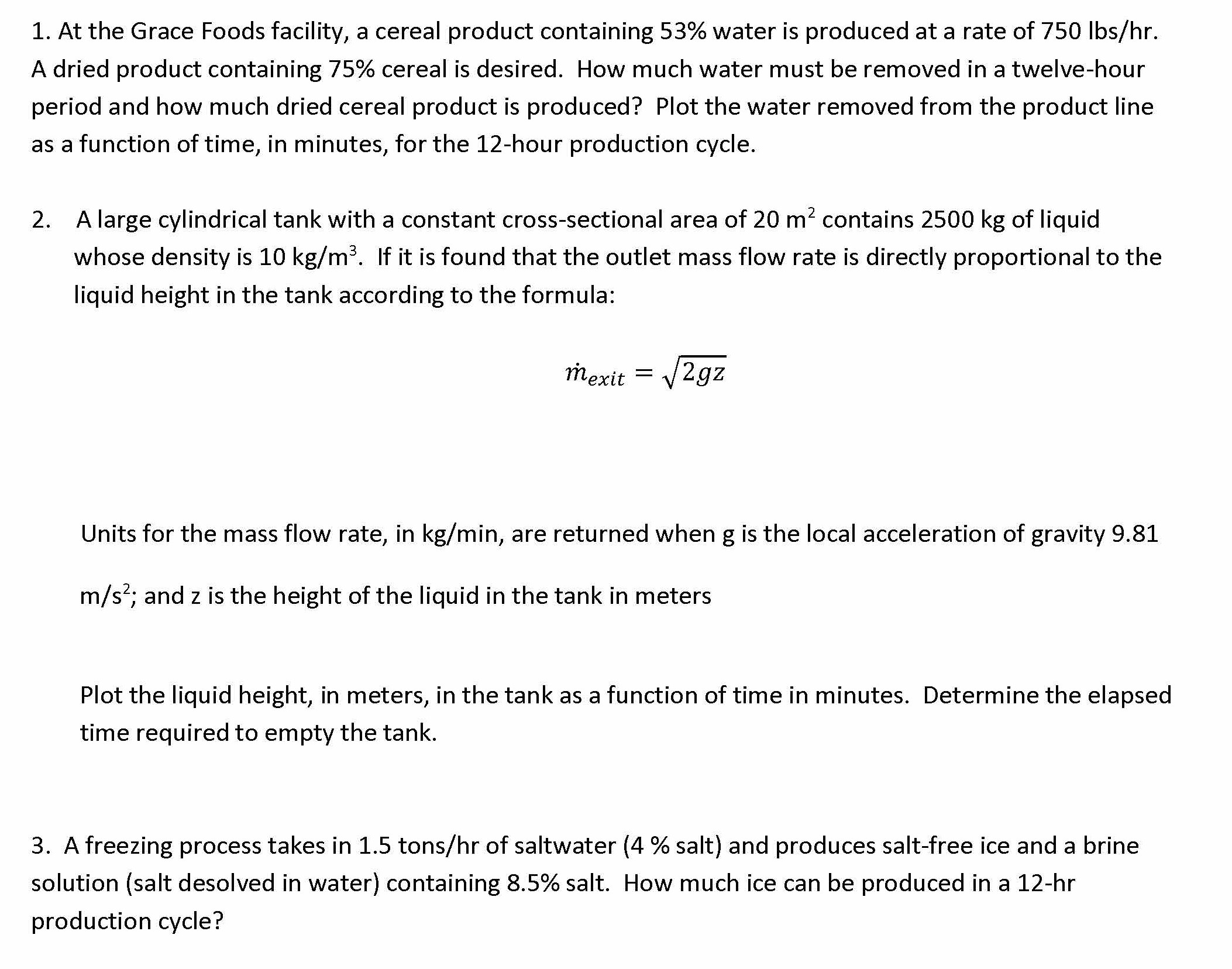 1. At the Grace Foods facility, a cereal product containing 53% wat...