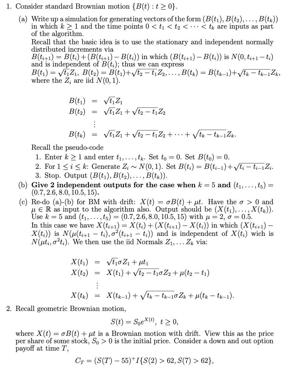 1. Consider standard Brownian motion {B(t) : }. (a) Write up a sim...