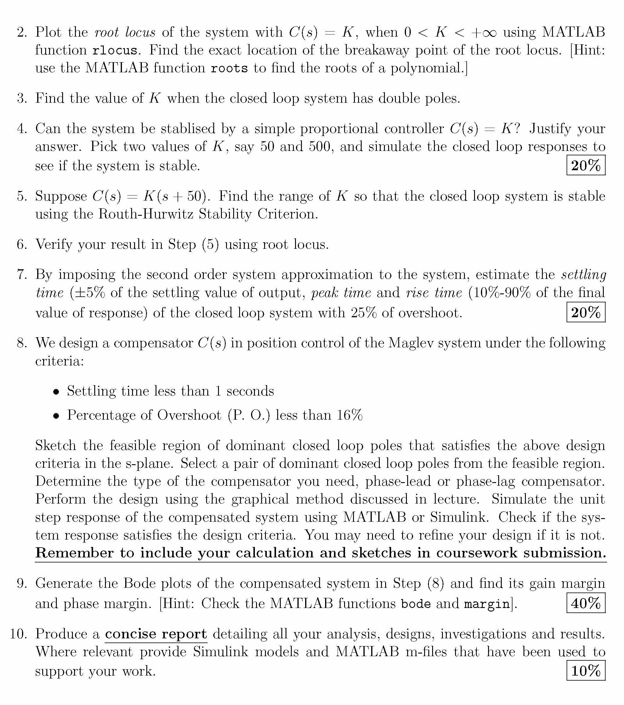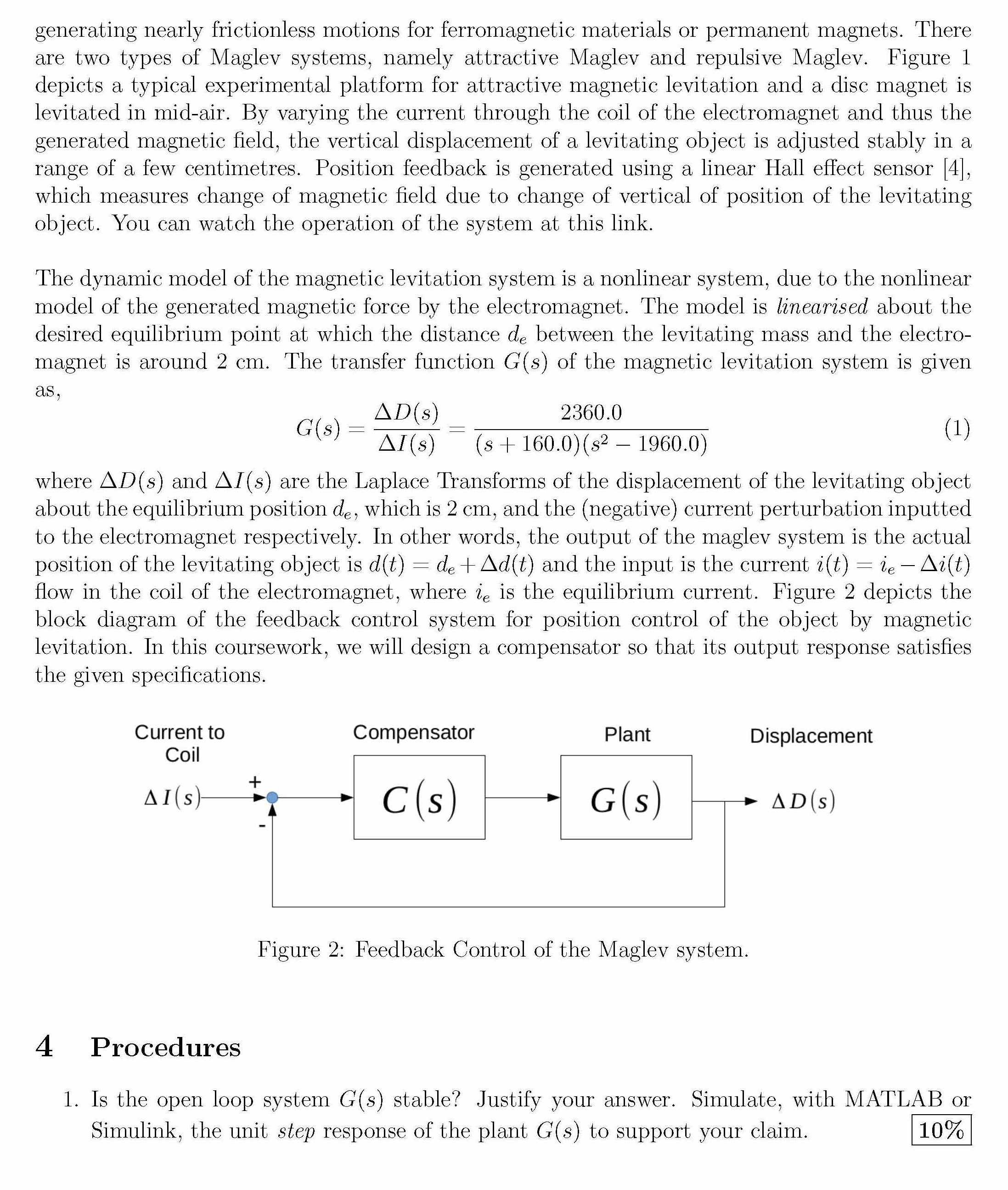 1 Objectives To analyse and control position of a Magnetic Levitat...