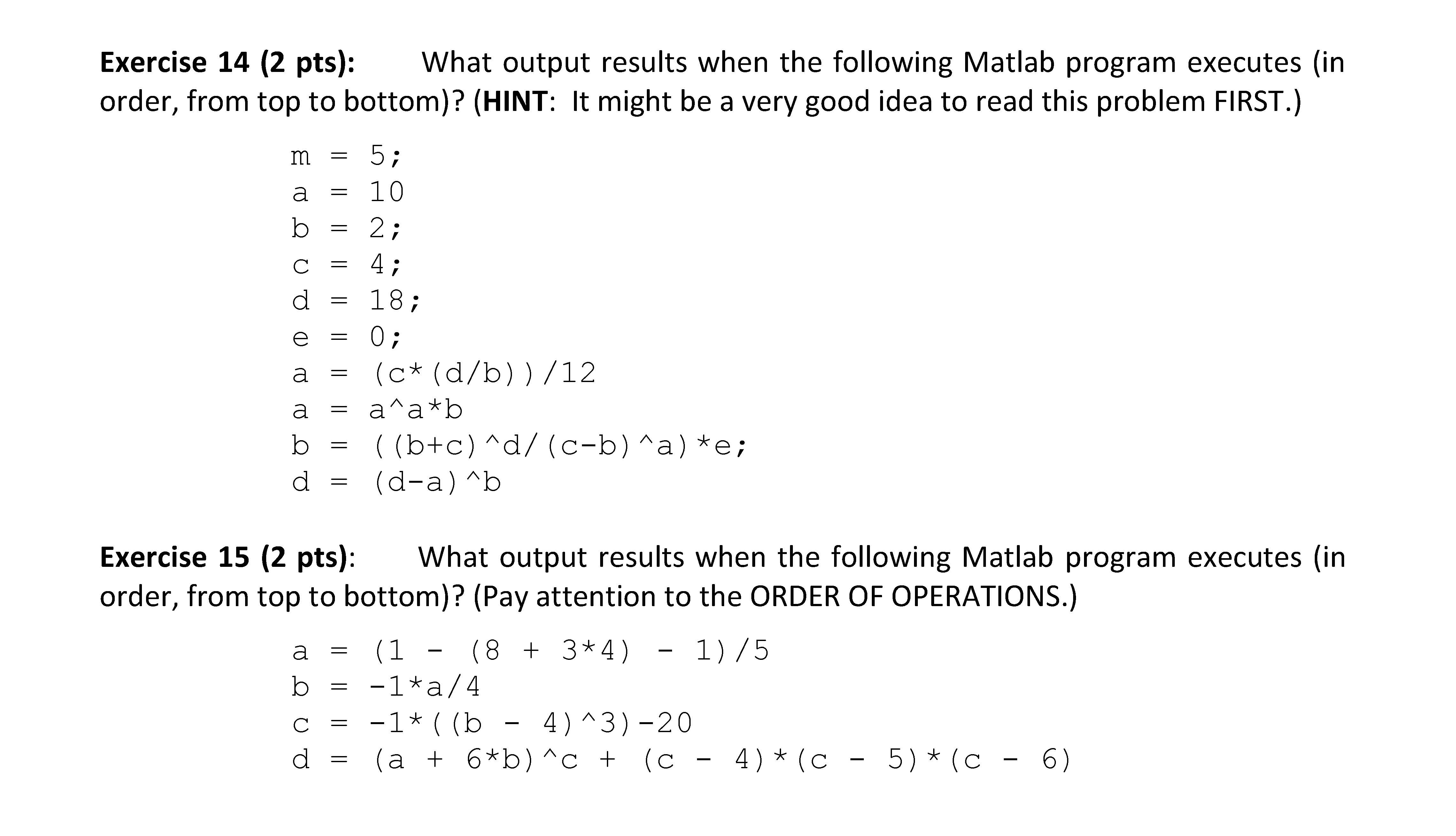 Exercise 10 (1 pt): What output results when the following Matlab p...