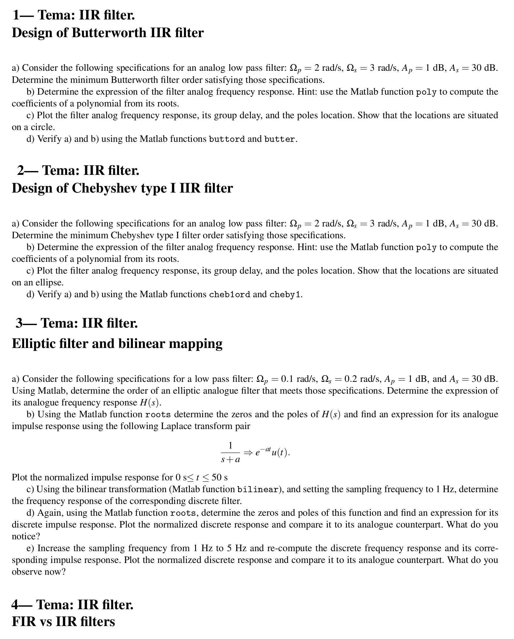 1- Tema: IIR filter. Design of Butterworth IIR filter a) Consider...