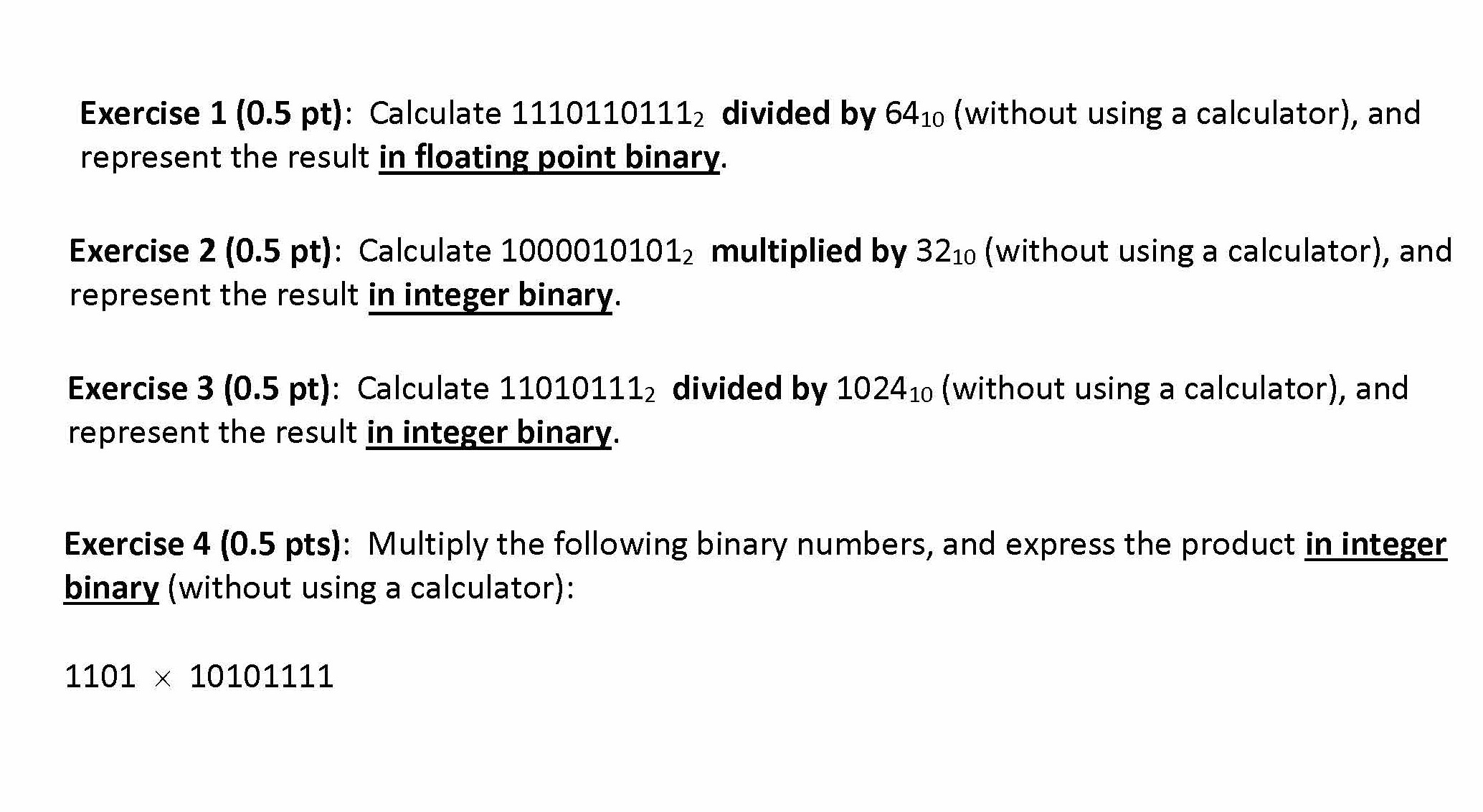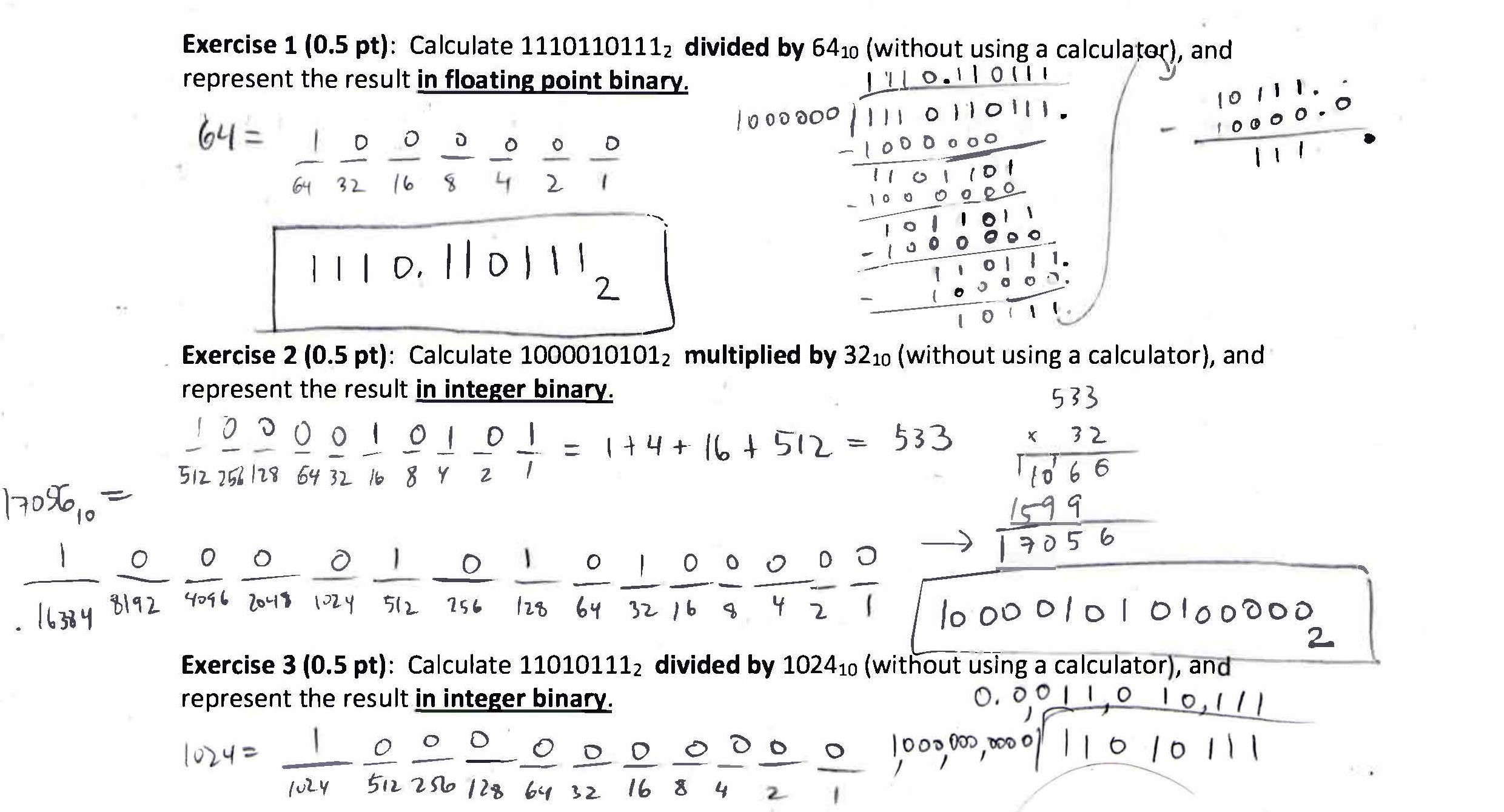 Exercise 1 (0.5 pt): Calculate 11101101112 divided by 6410 (without...