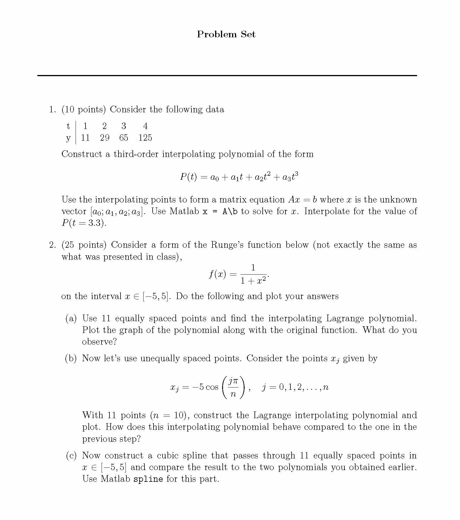 Problem Set 1. (10 points) Consider the following data t1234 y 11...