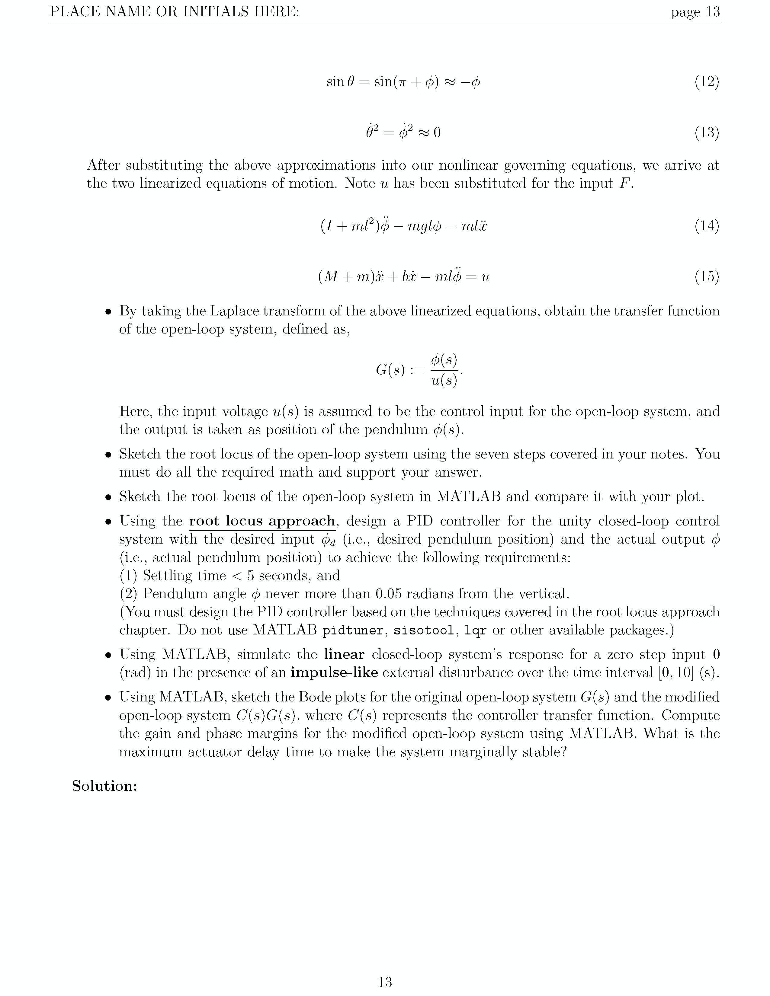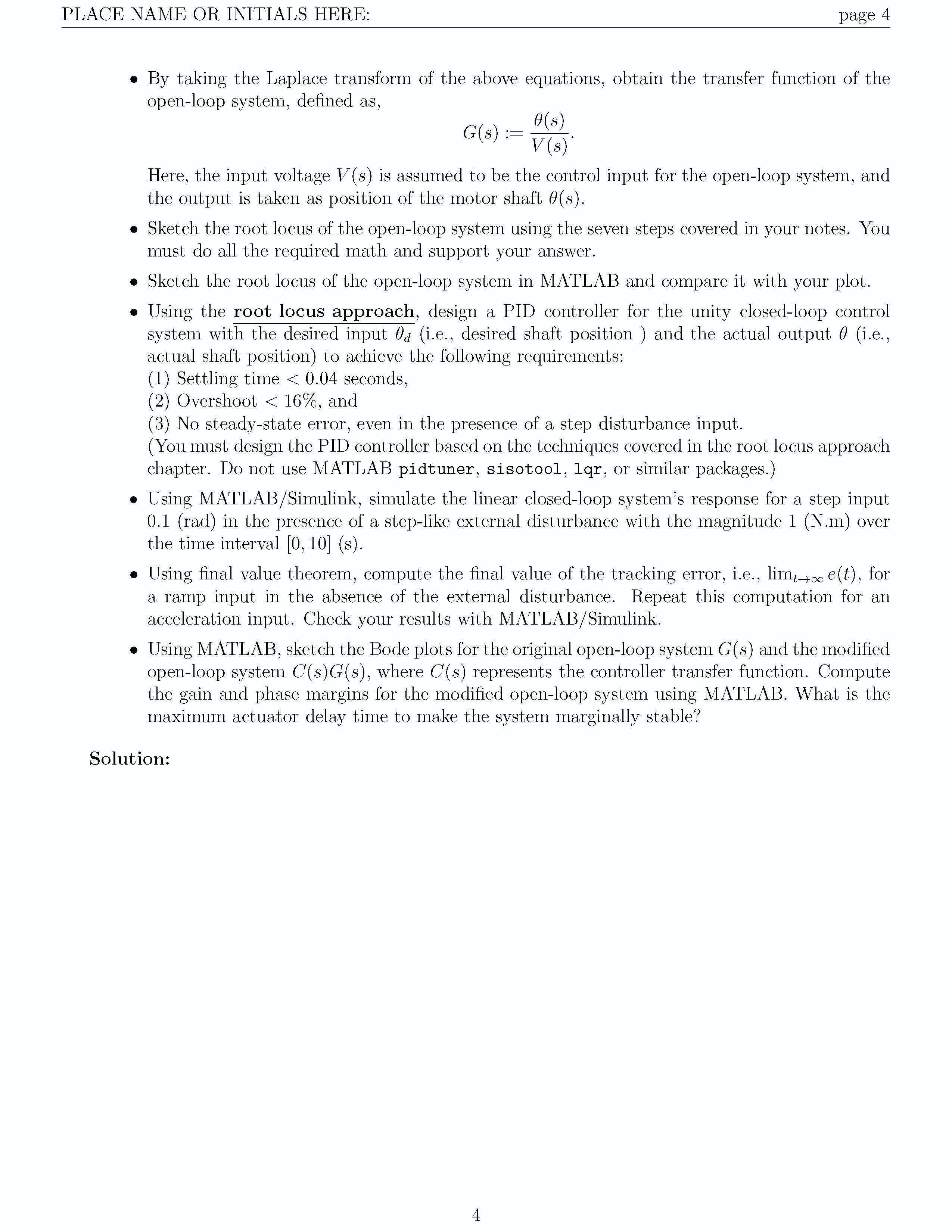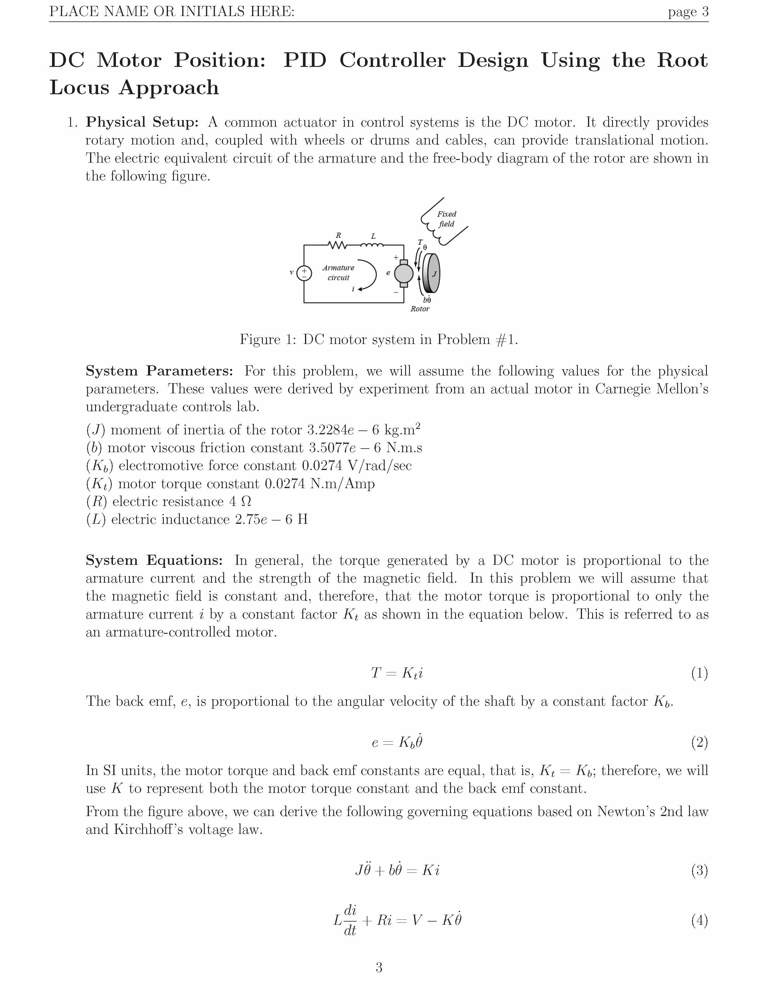 PLACE NAME OR INITIALS HERE: page 3 DC Motor Position: PID Control...