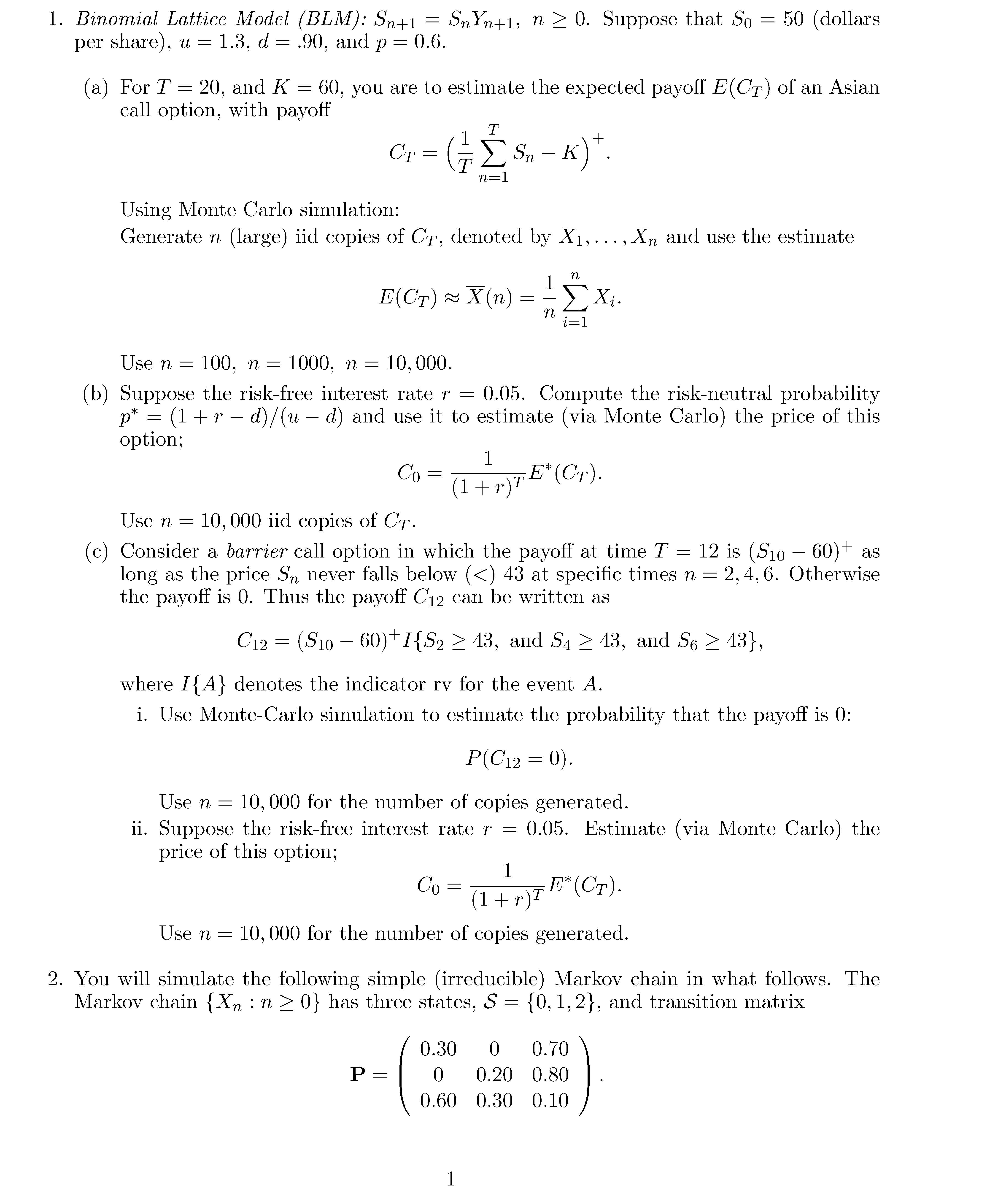 1. Binomial Lattice Model (BLM): Sn+1 = SnYn+1, 72 >0. Suppose t...