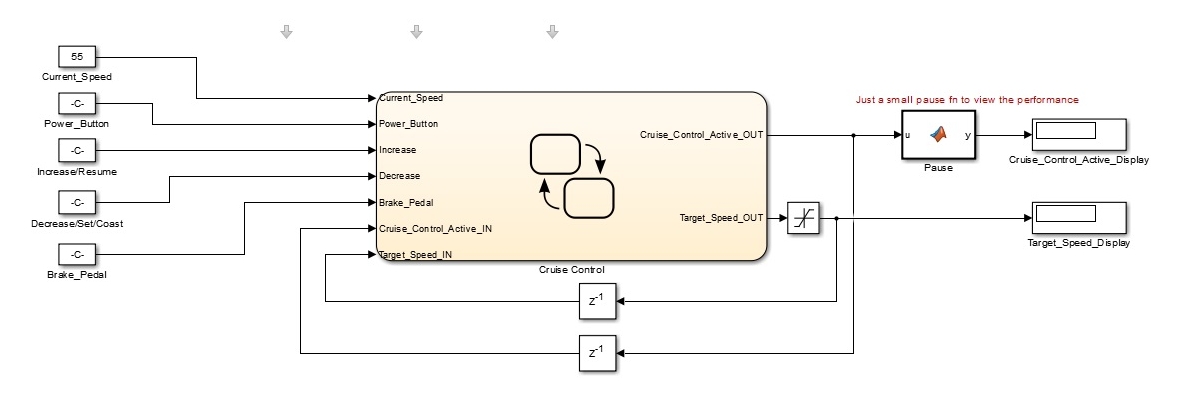 Using a Simulink Stateflow chart, design part of a cruise control s...