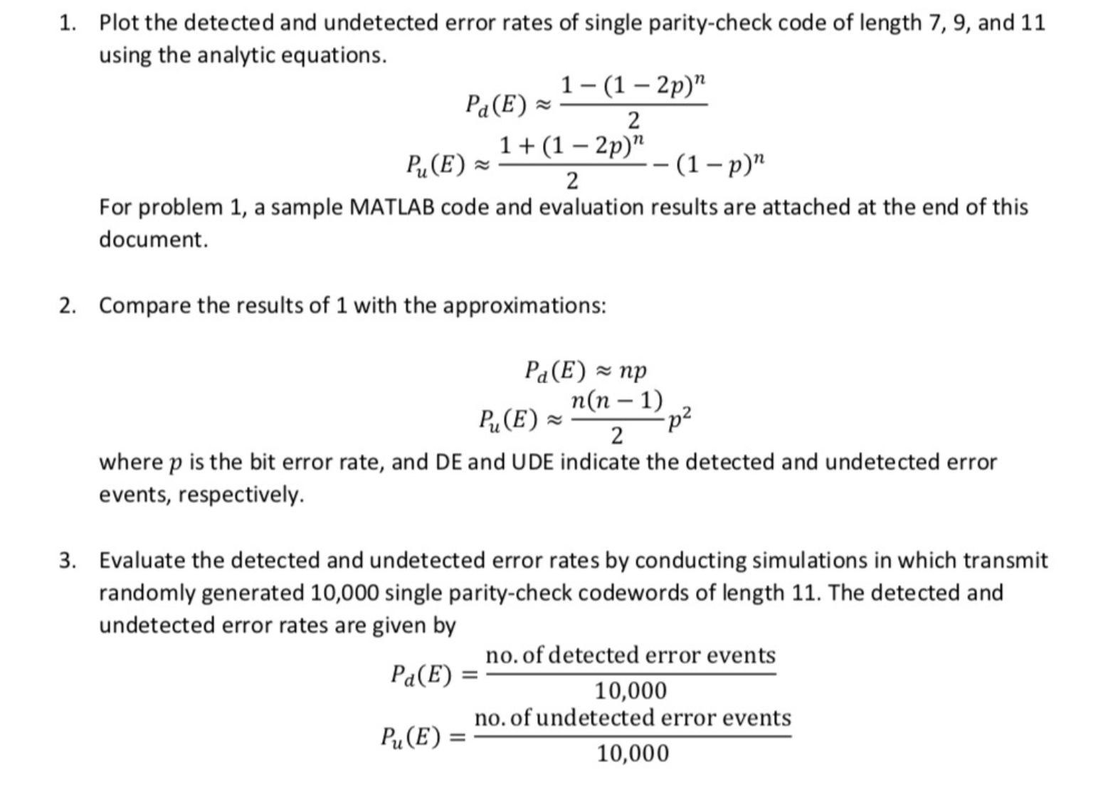 1. Plot the detected and undetected error rates of single parity-ch...