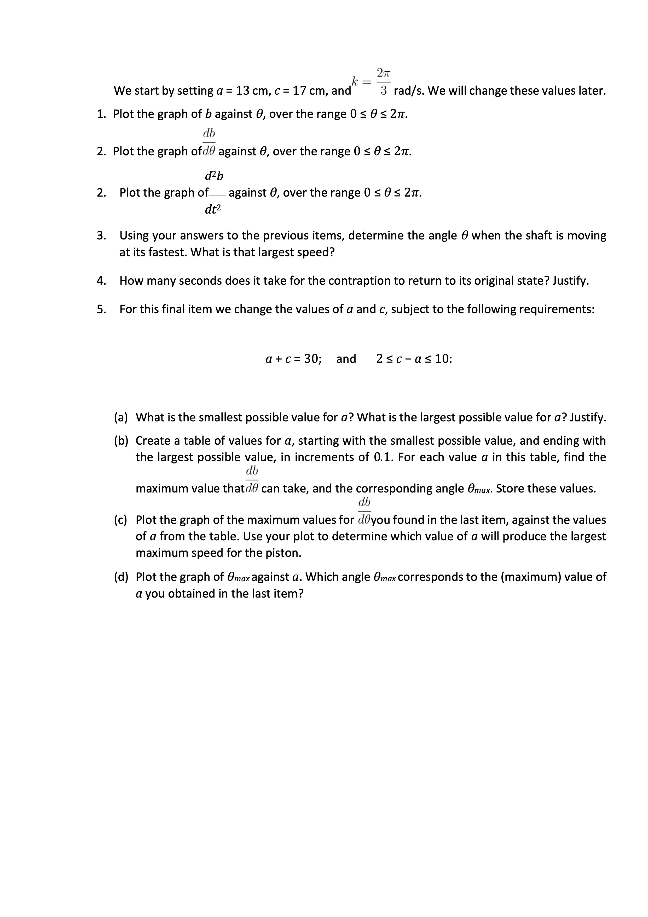 We start by setting a = 13 cm, c = 17 cm, and rad/s. We will change...