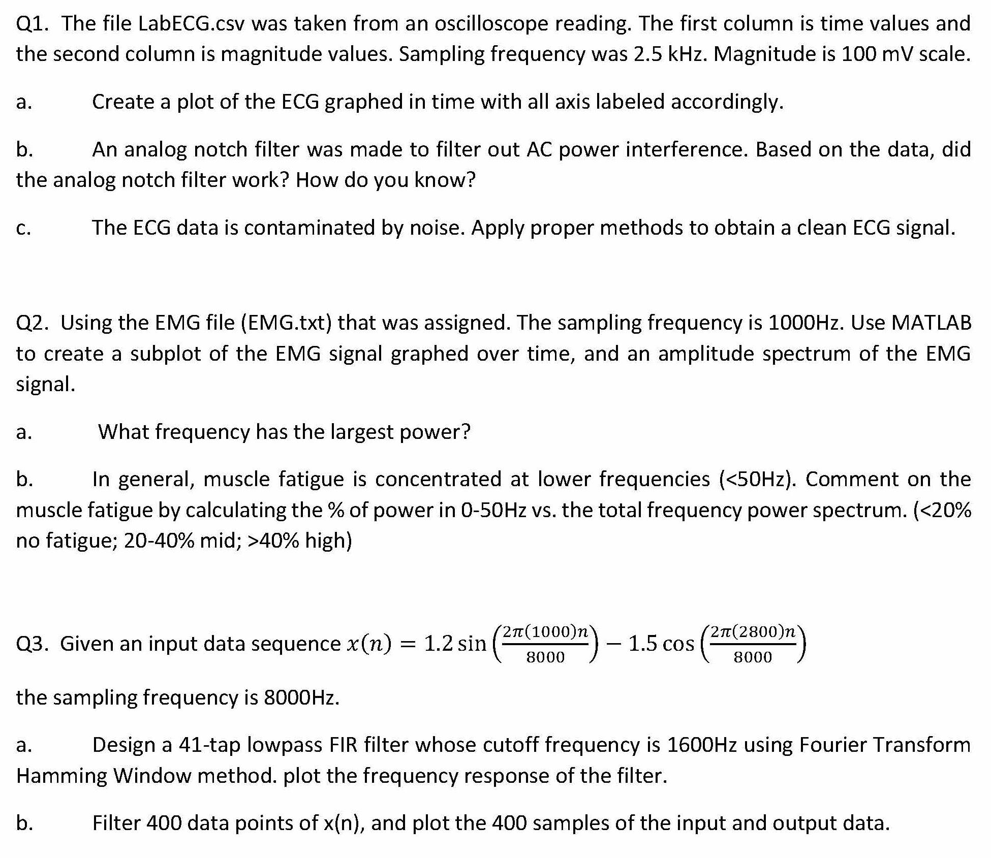 Q1. The file LabECG.csv was taken from an oscilloscope reading. The...