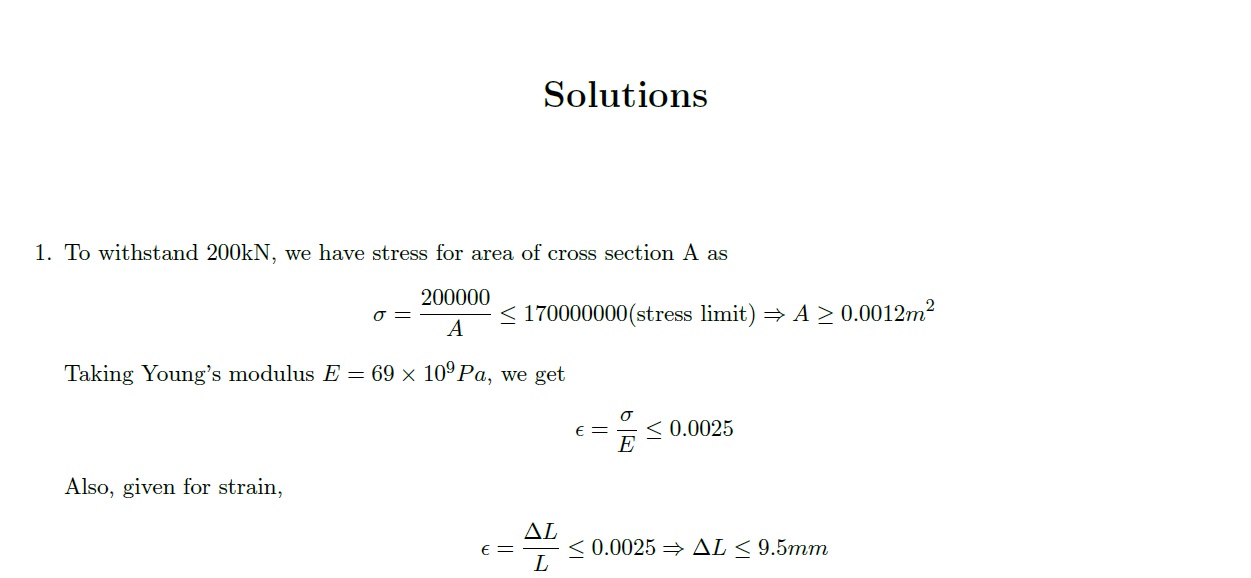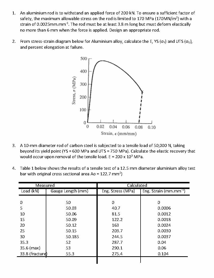 1. An aluminium rod is to withstand an applied force of 200 kN. To ...