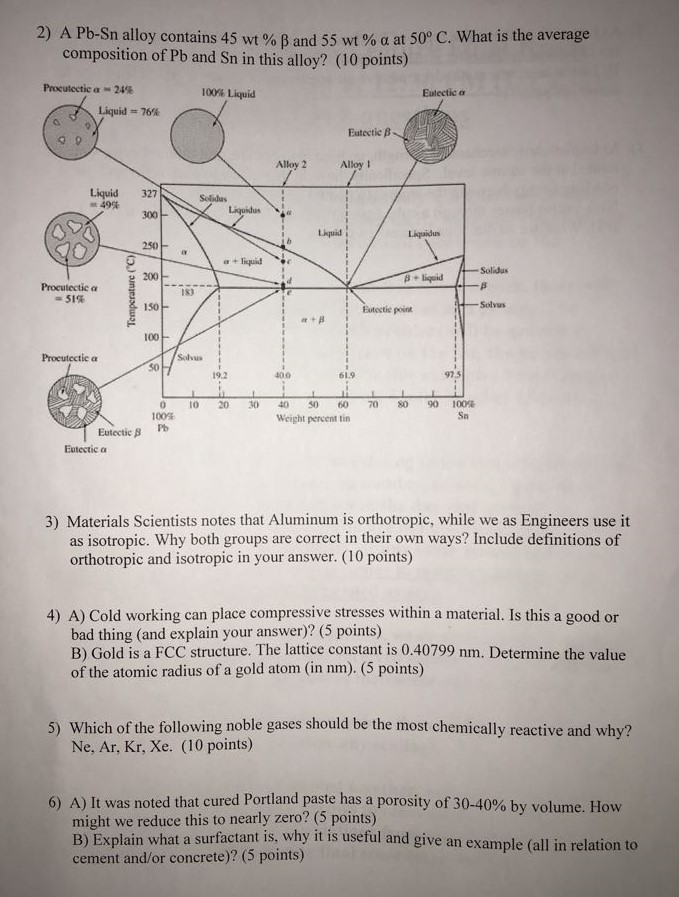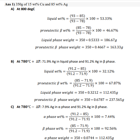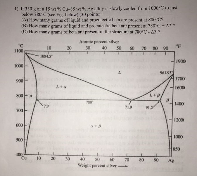 1) If '350 g of a 15 wt % Cu-85 wt % Ag alloy is slowly cooled from...