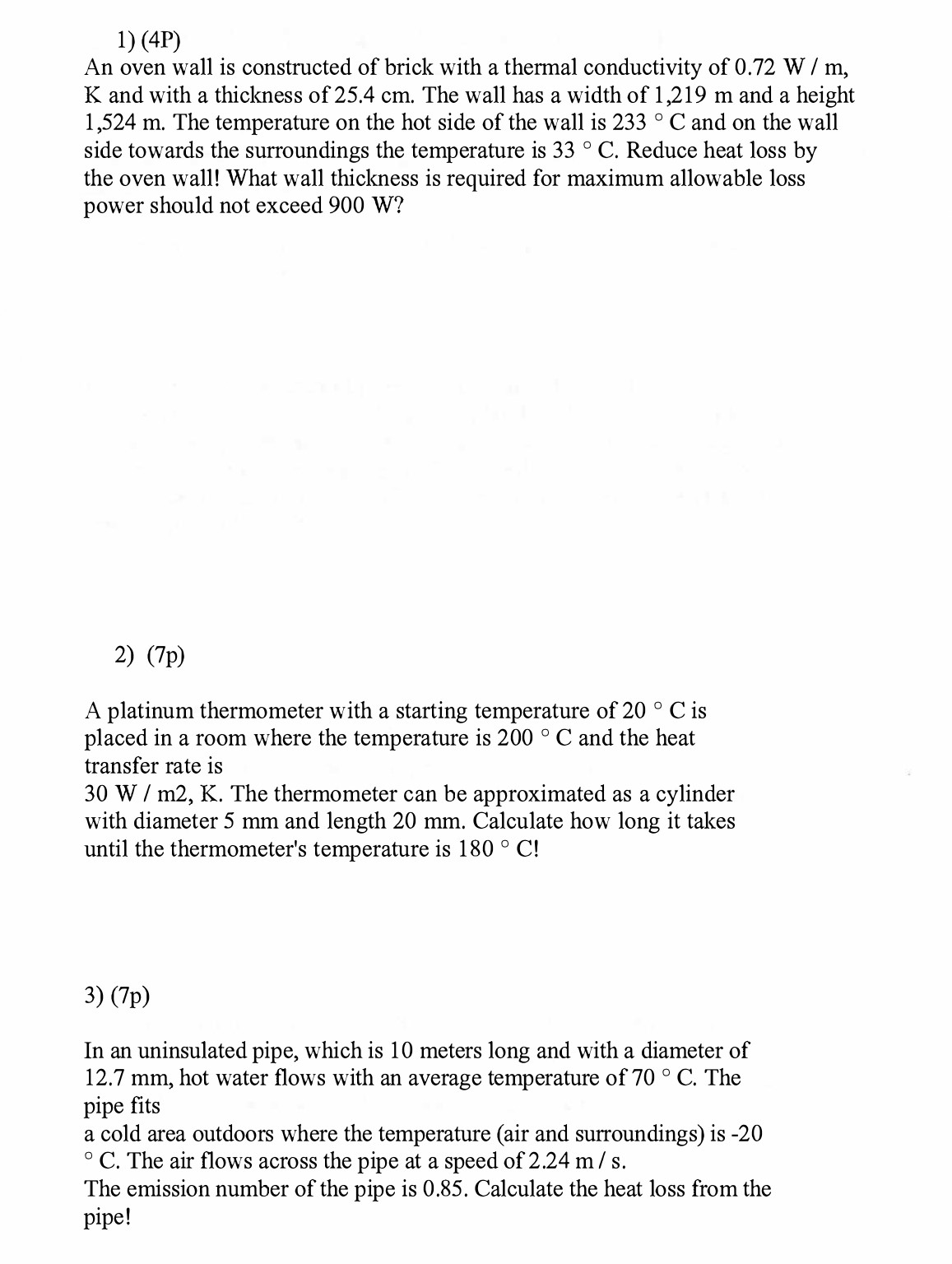 1) (4P) An oven wall is constructed of brick with a thermal conduc...