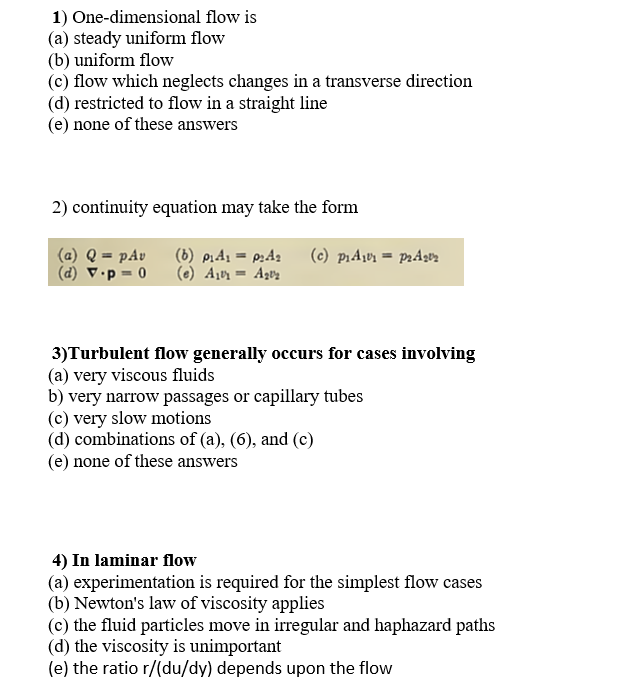 1) One-dimensional flow is (a) steady uniform flow (b) uniform fl...