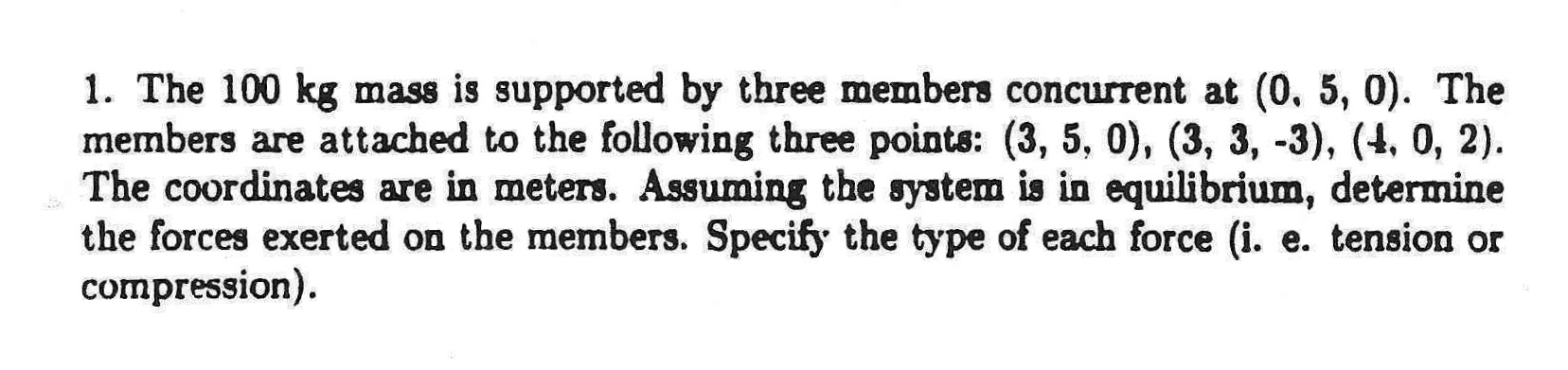 1. The 100 kg mass is supported by three members concurrent at (0. ...