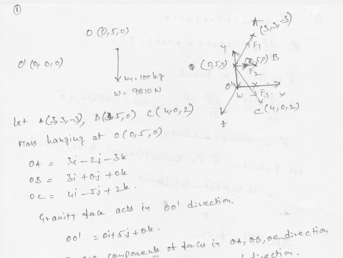 1. The 100 kg mass is supported by three members concurrent at (0....