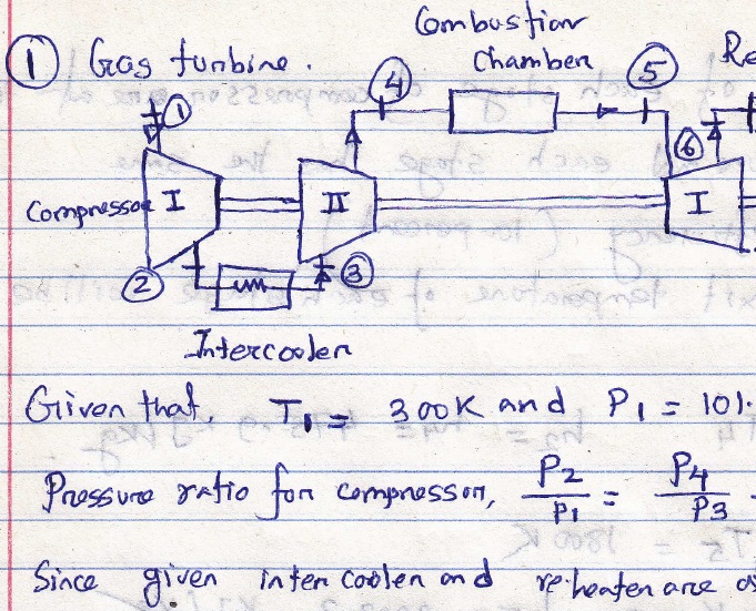 A gas turbine cycle with reheat ad intercooling is used to provide...