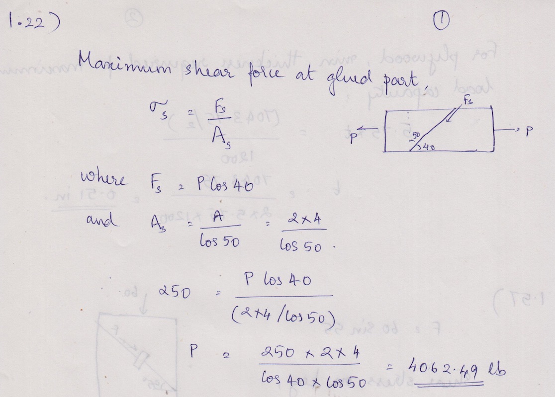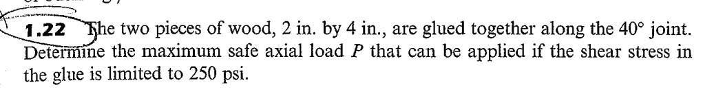 1.22 The two pieces of wood, 2 in. by 4 in., are glued together al...