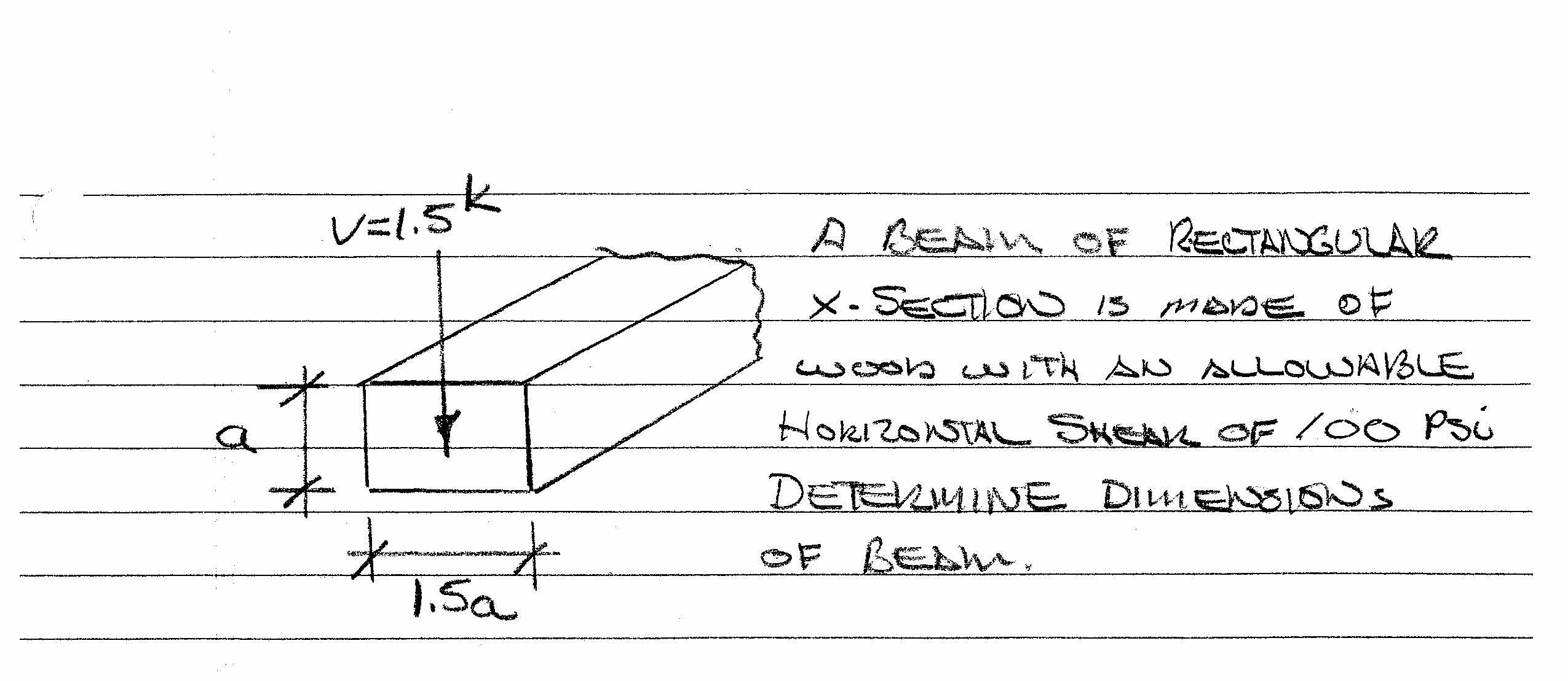 V=1.5K A BEAM OF RECTANGULAR X. SECTION is MADE OF wook with AN...