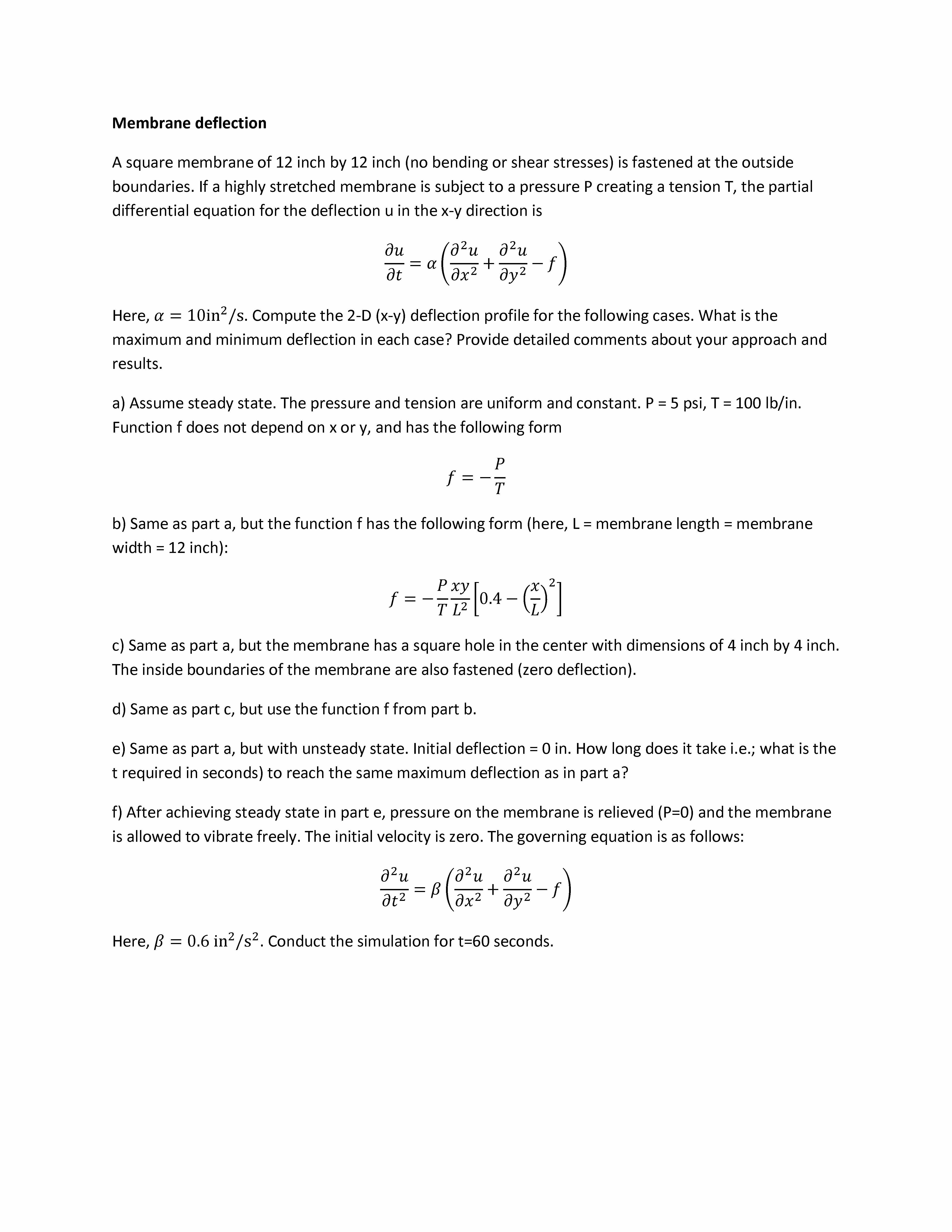 Membrane deflection square membrane of 12 inch by 12 inch (no bend...