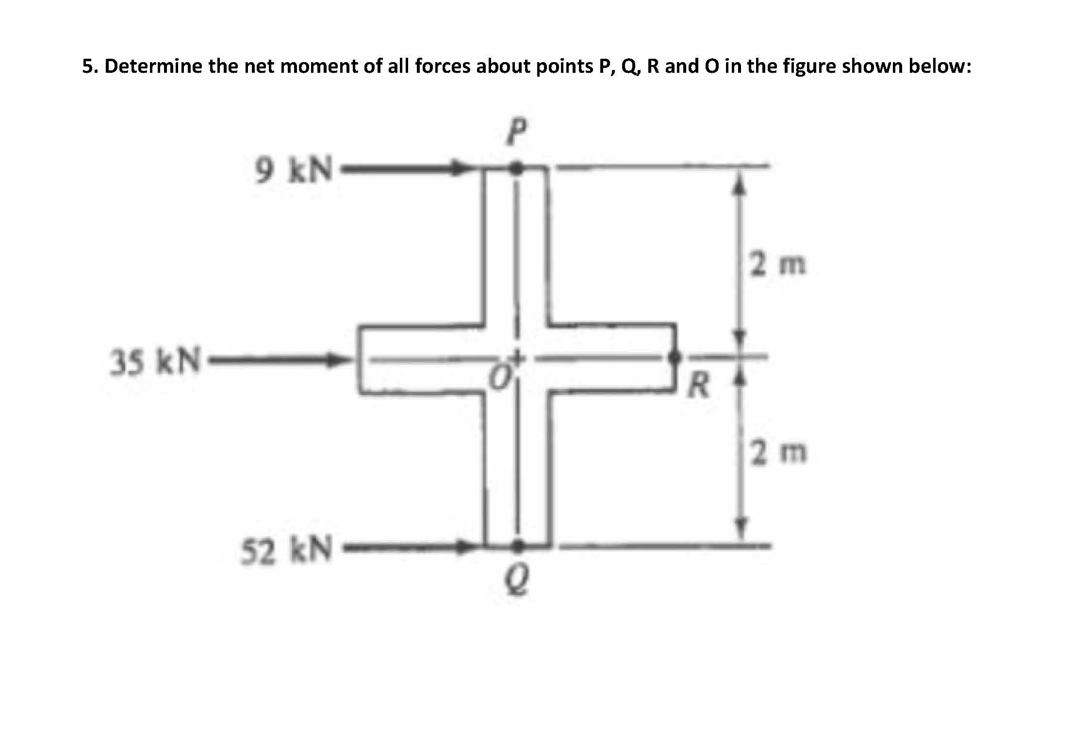 . Determine the net moment of all forces about points P, Q, R and o...