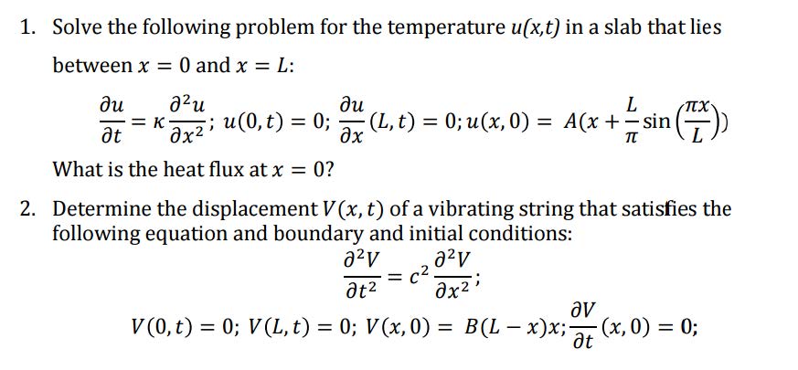 1. Solve the following problem for the temperature u(x,t) in a slab...