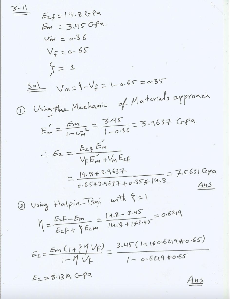 3.11 Determine the transverse modulus E2 of a unidirec- tional ca...