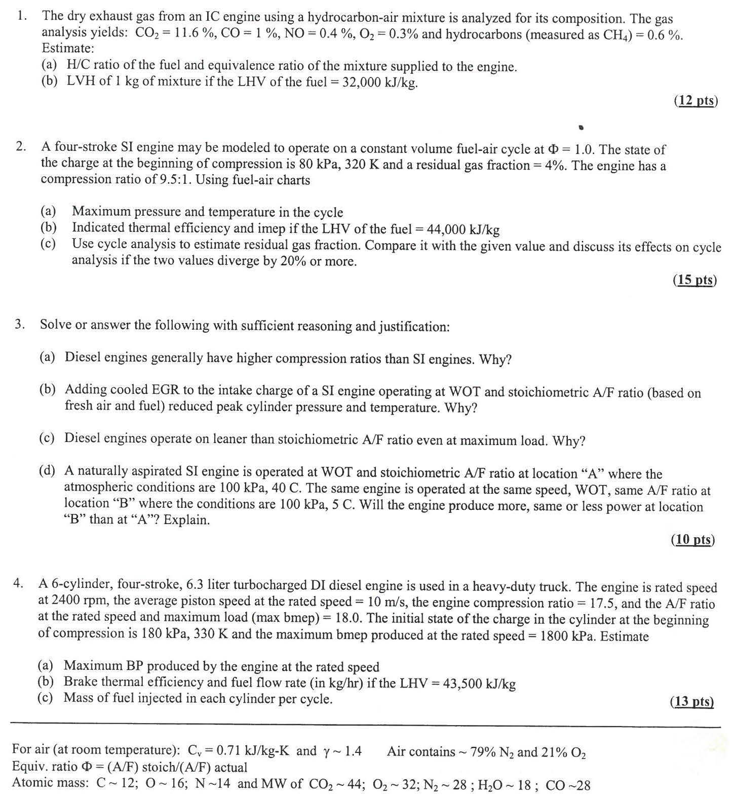 1. The dry exhaust gas from an IC engine using a hydrocarbon-air m...
