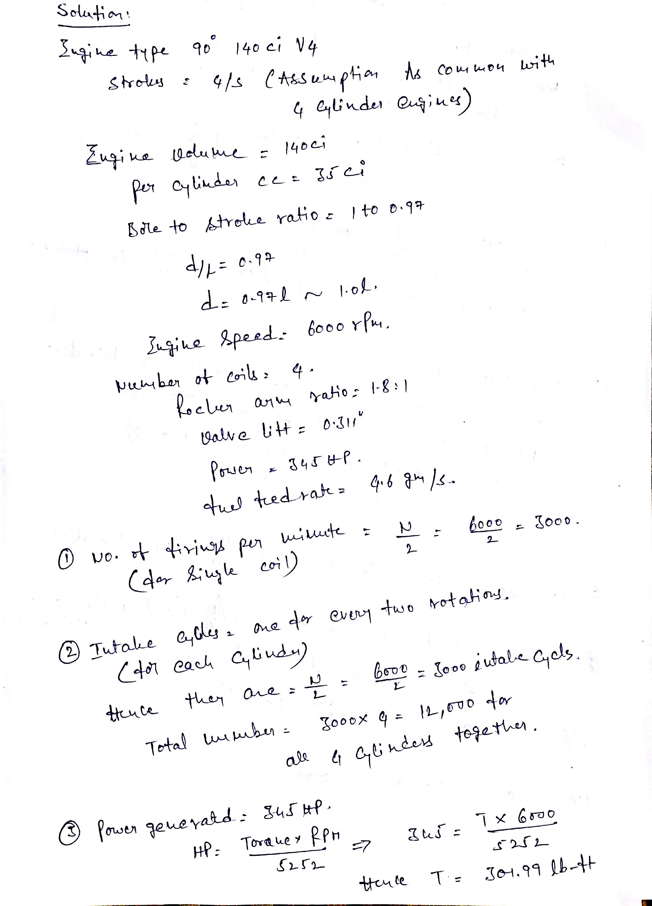 A 90° 140ci V-4 engine has 2.85ci combustion chamber heads and f...