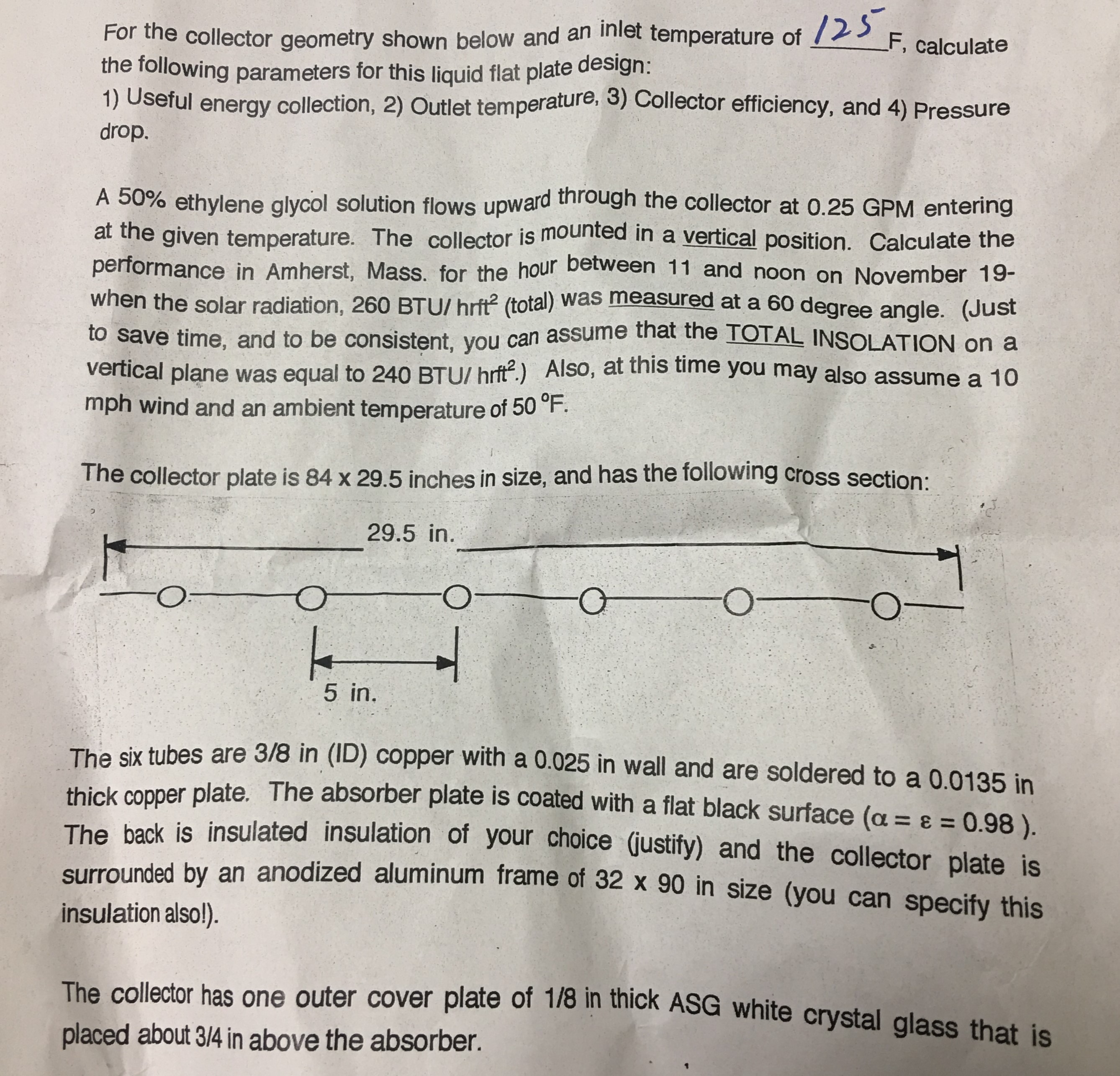 For the collector geometry shown below and an inlet temperature of...