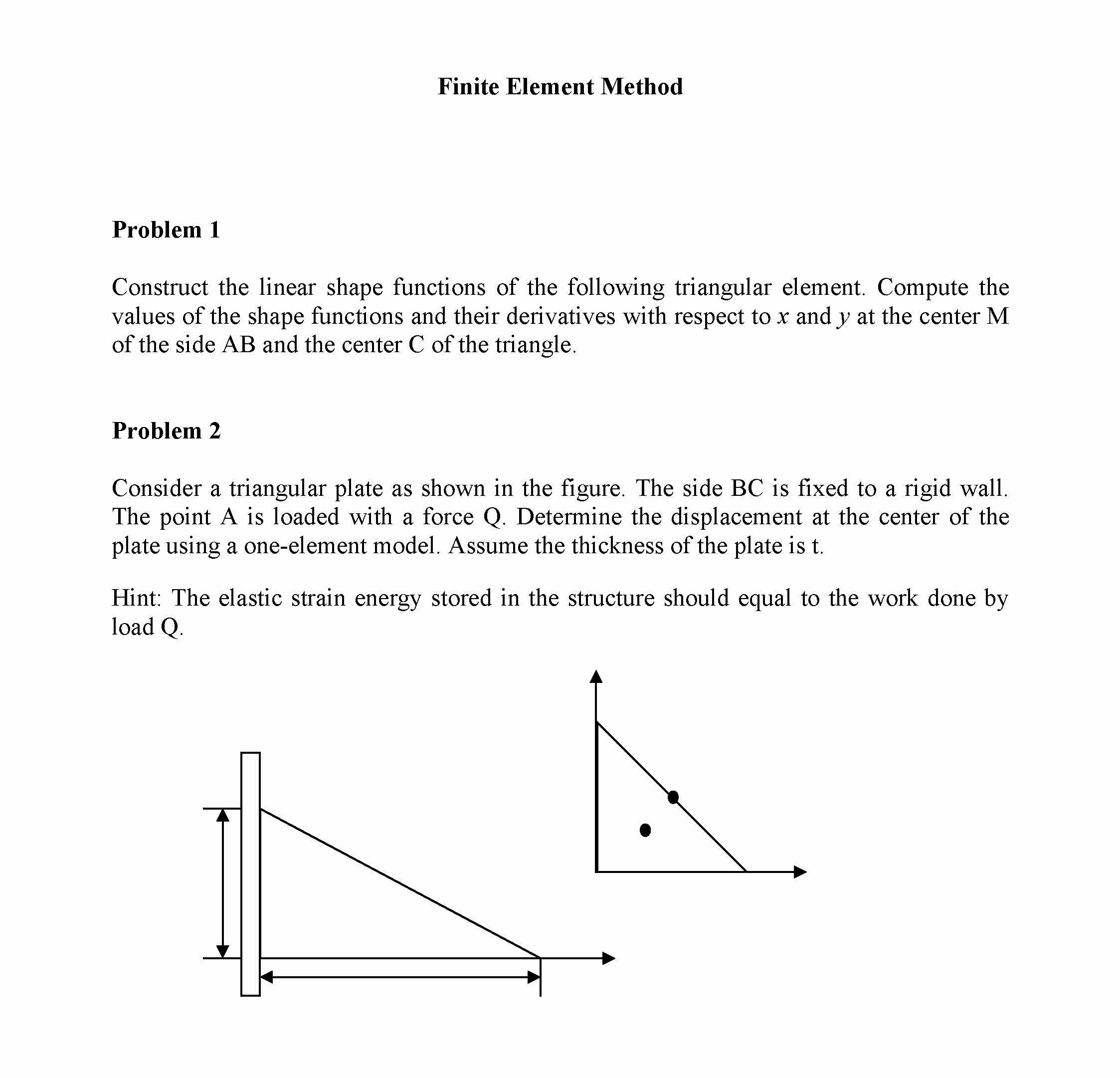 Finite Element Method Problem 1 Construct the linear shape fu...